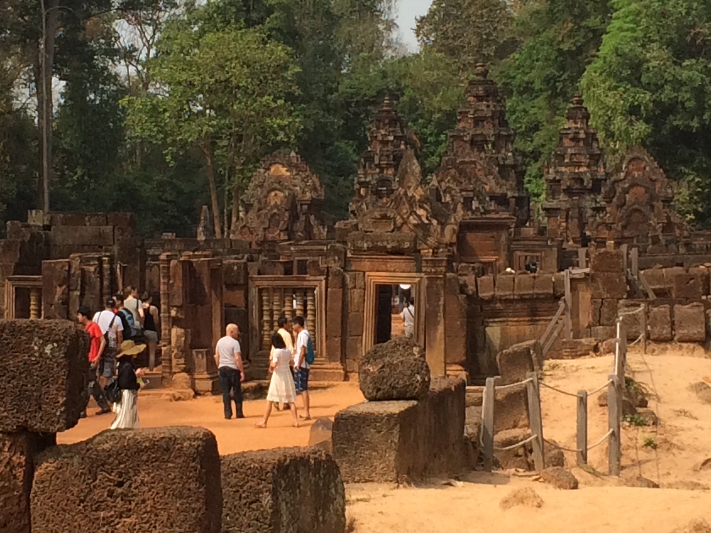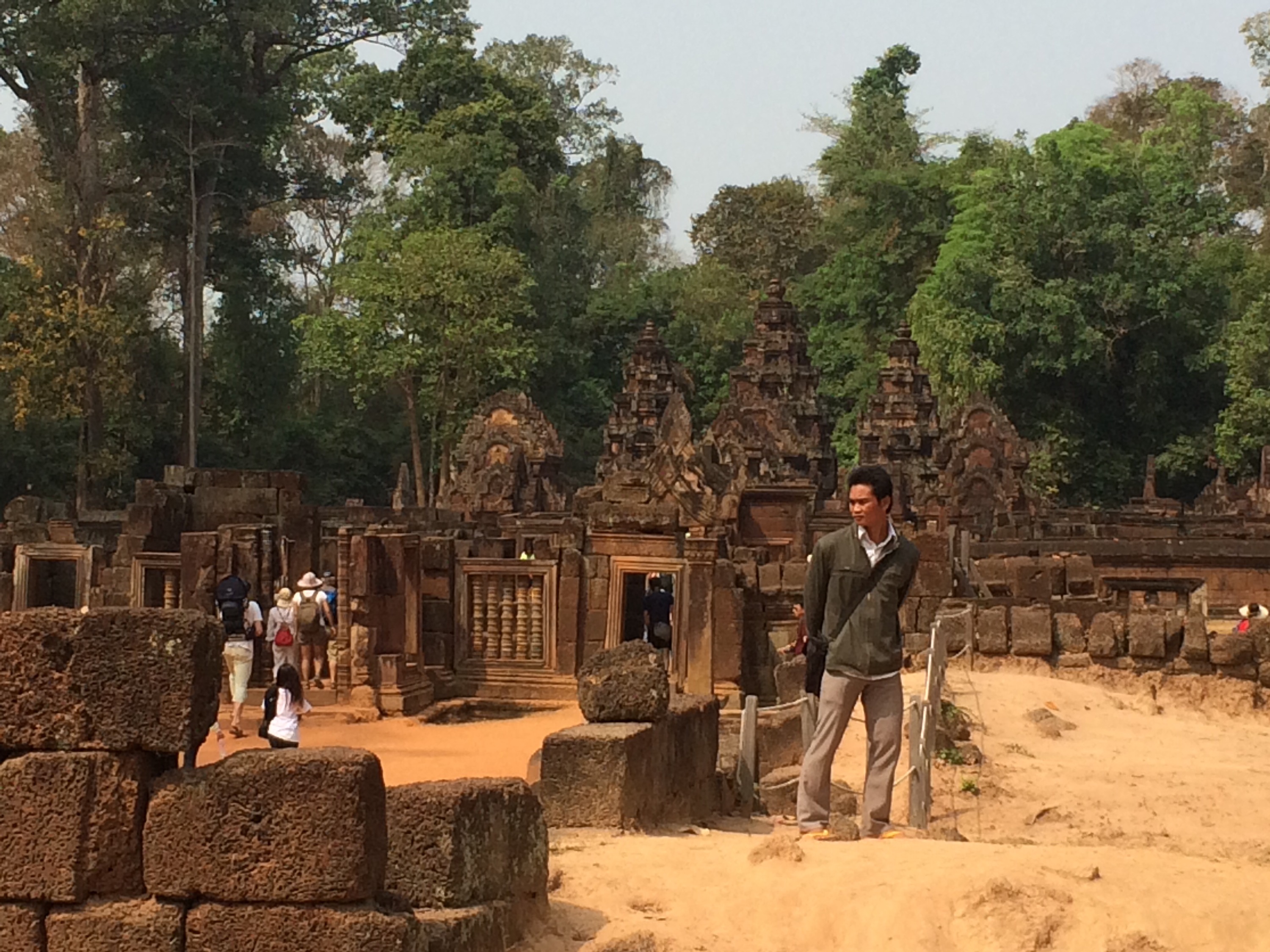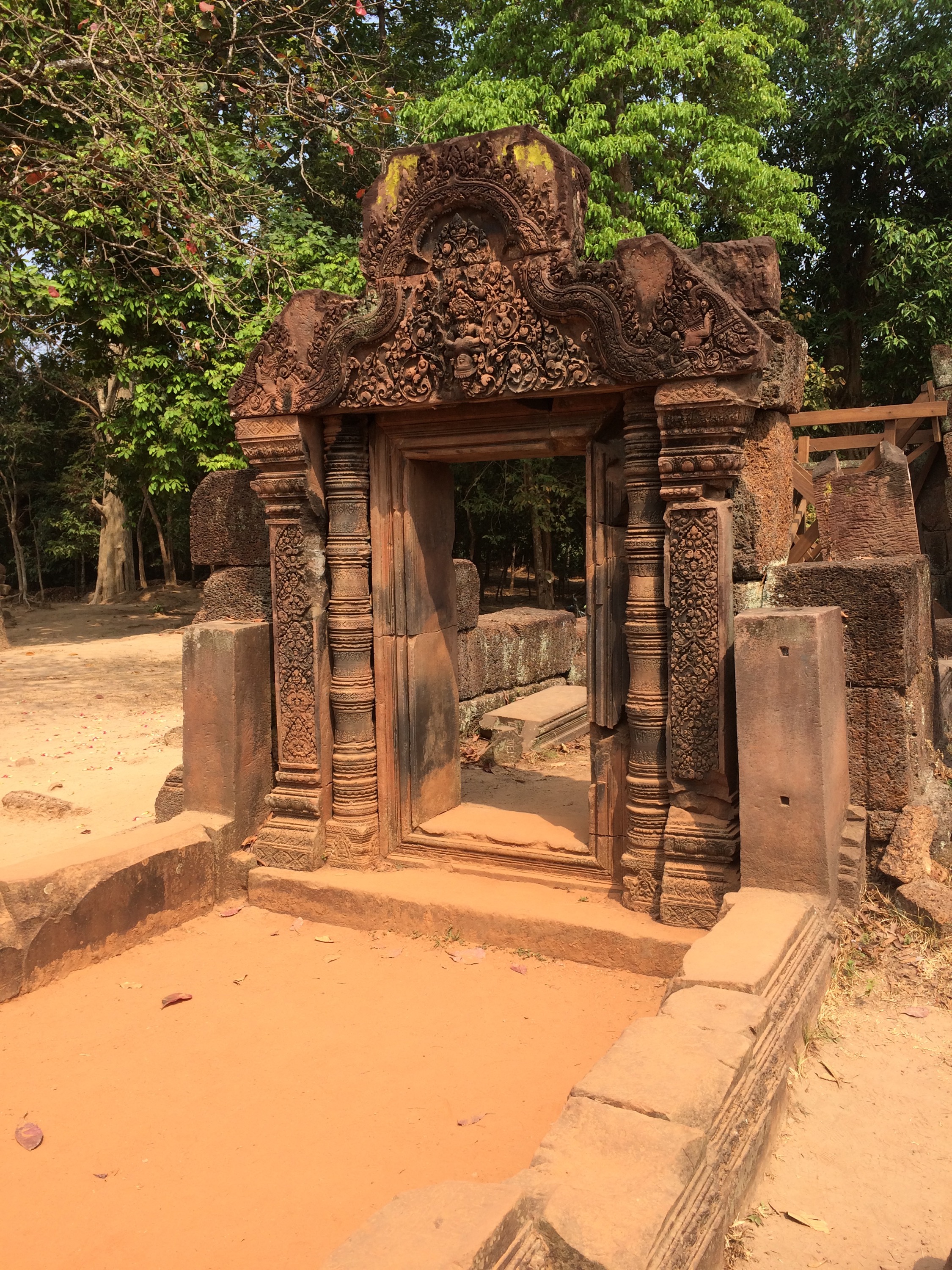 After visiting Bayon in the Angkor Thom complex we drove the 35 minuets to one of the Angkor temples that was built not by the ruler, but by the religious group and was dedicated to ladies – Banteay Srei temple. The carvings in the pink sandstone are truly amazing, despite it having been built in the 900’s AD.
