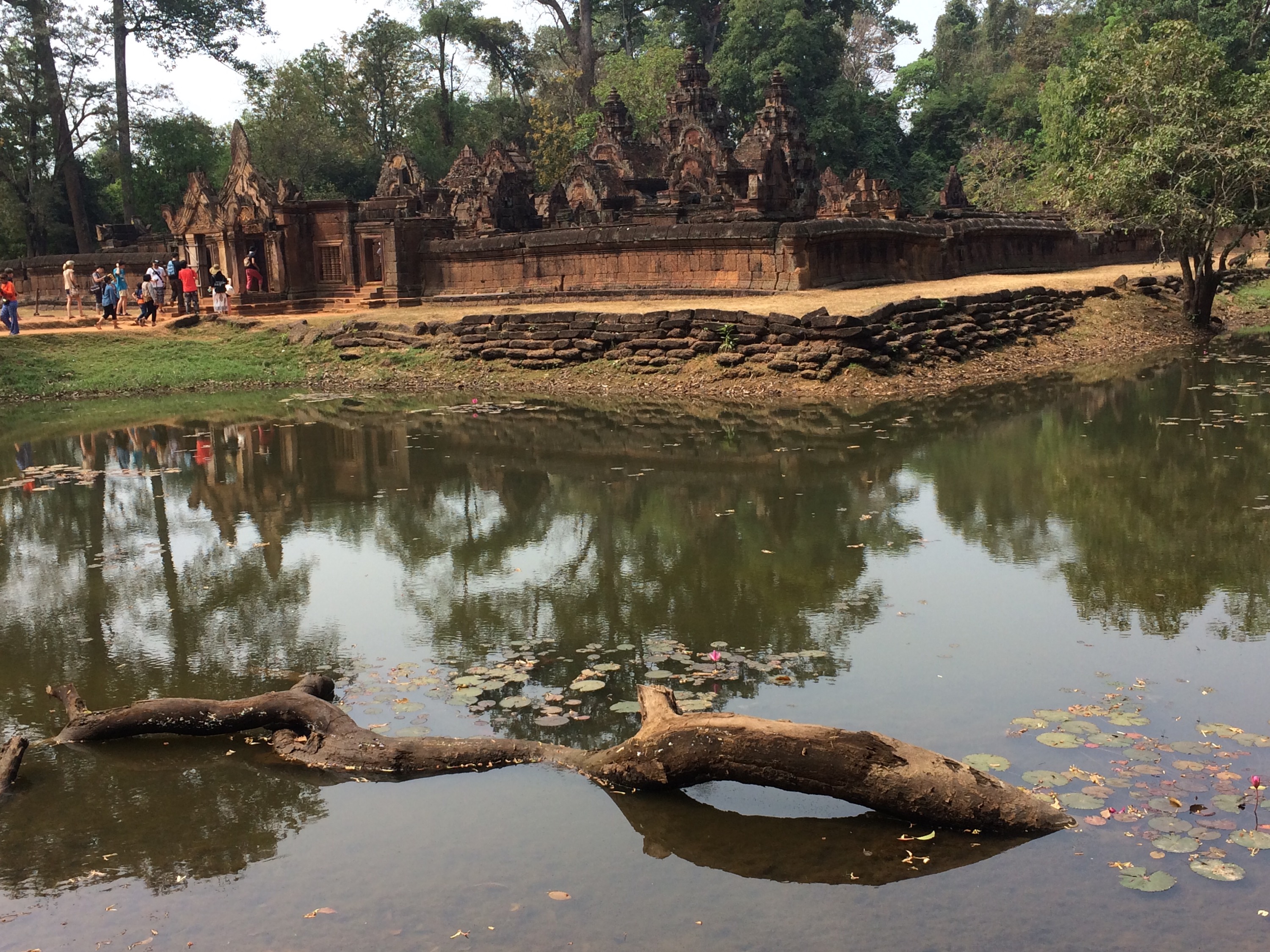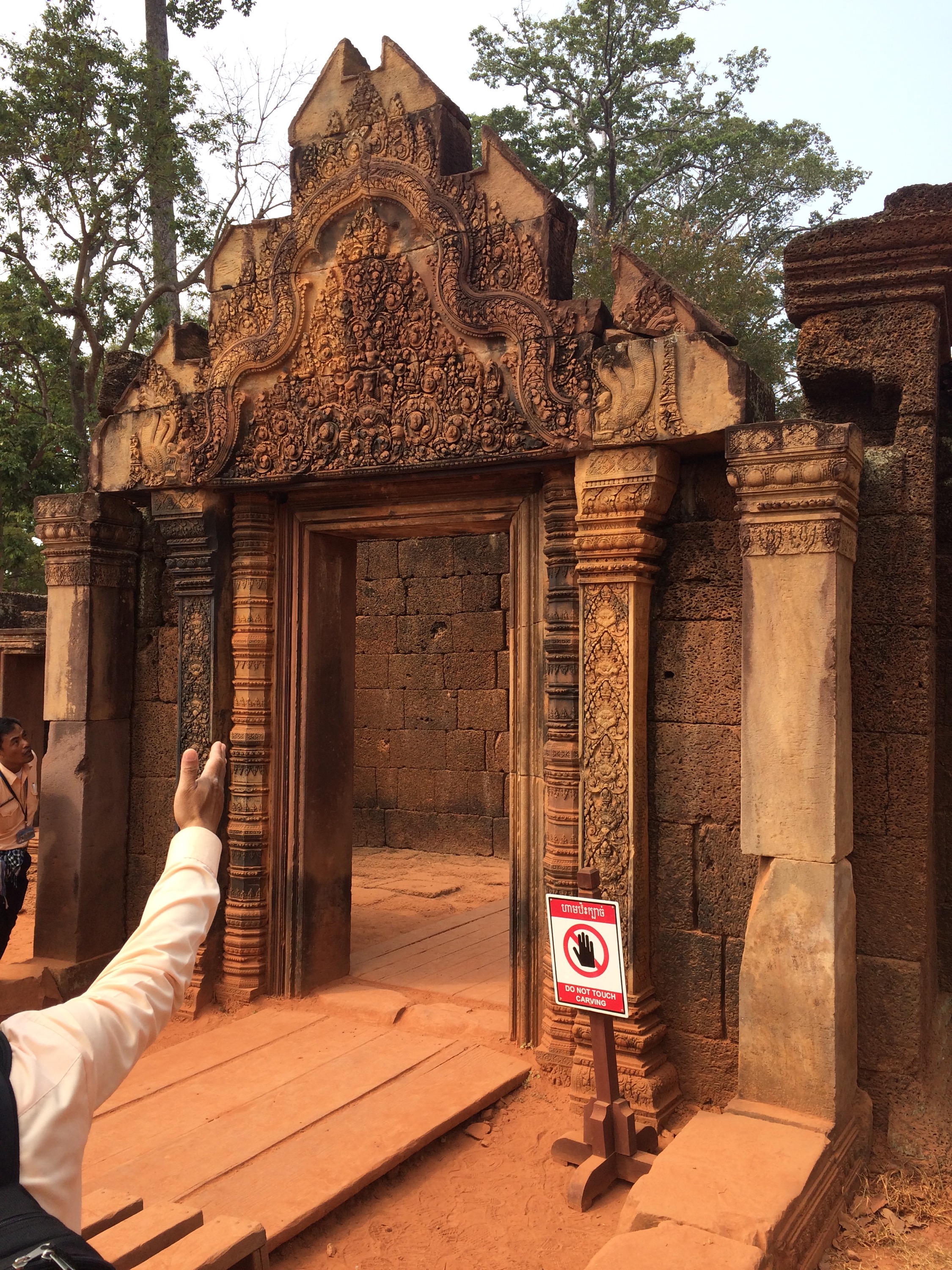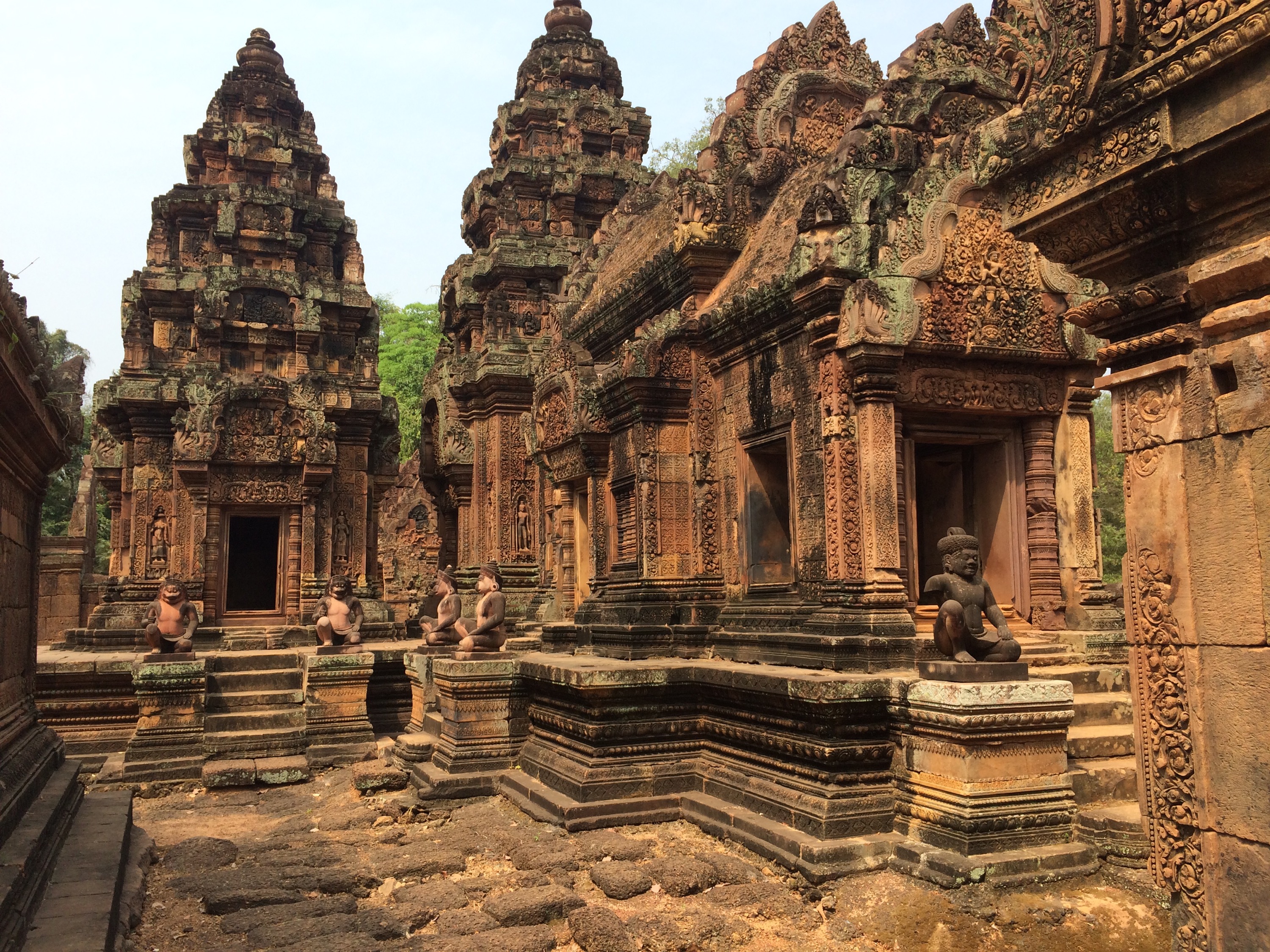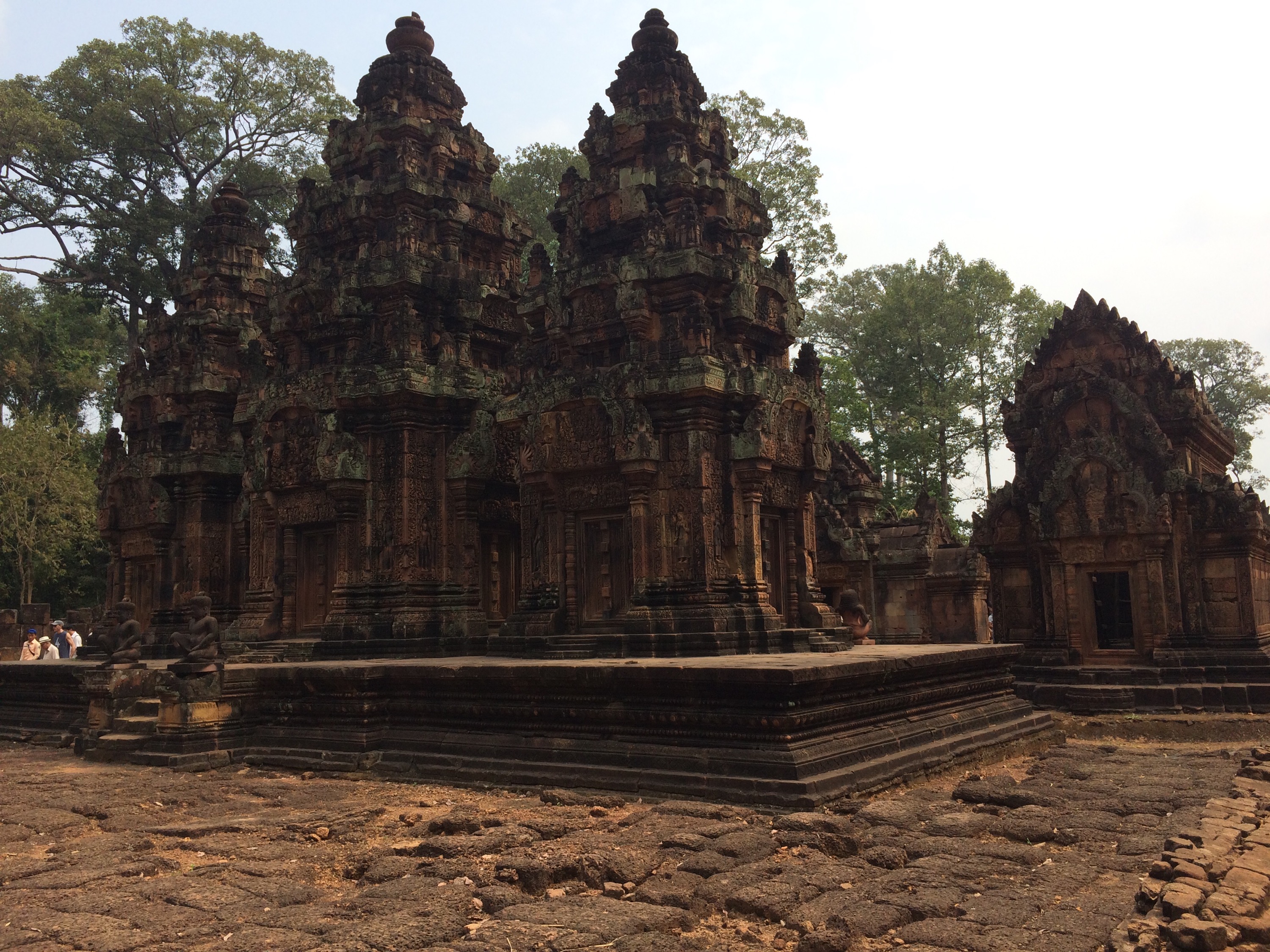 After visiting Bayon in the Angkor Thom complex we drove the 35 minuets to one of the Angkor temples that was built not by the ruler, but by the religious group and was dedicated to ladies – Banteay Srei temple. The carvings in the pink sandstone are truly amazing, despite it having been built in the 900’s AD.