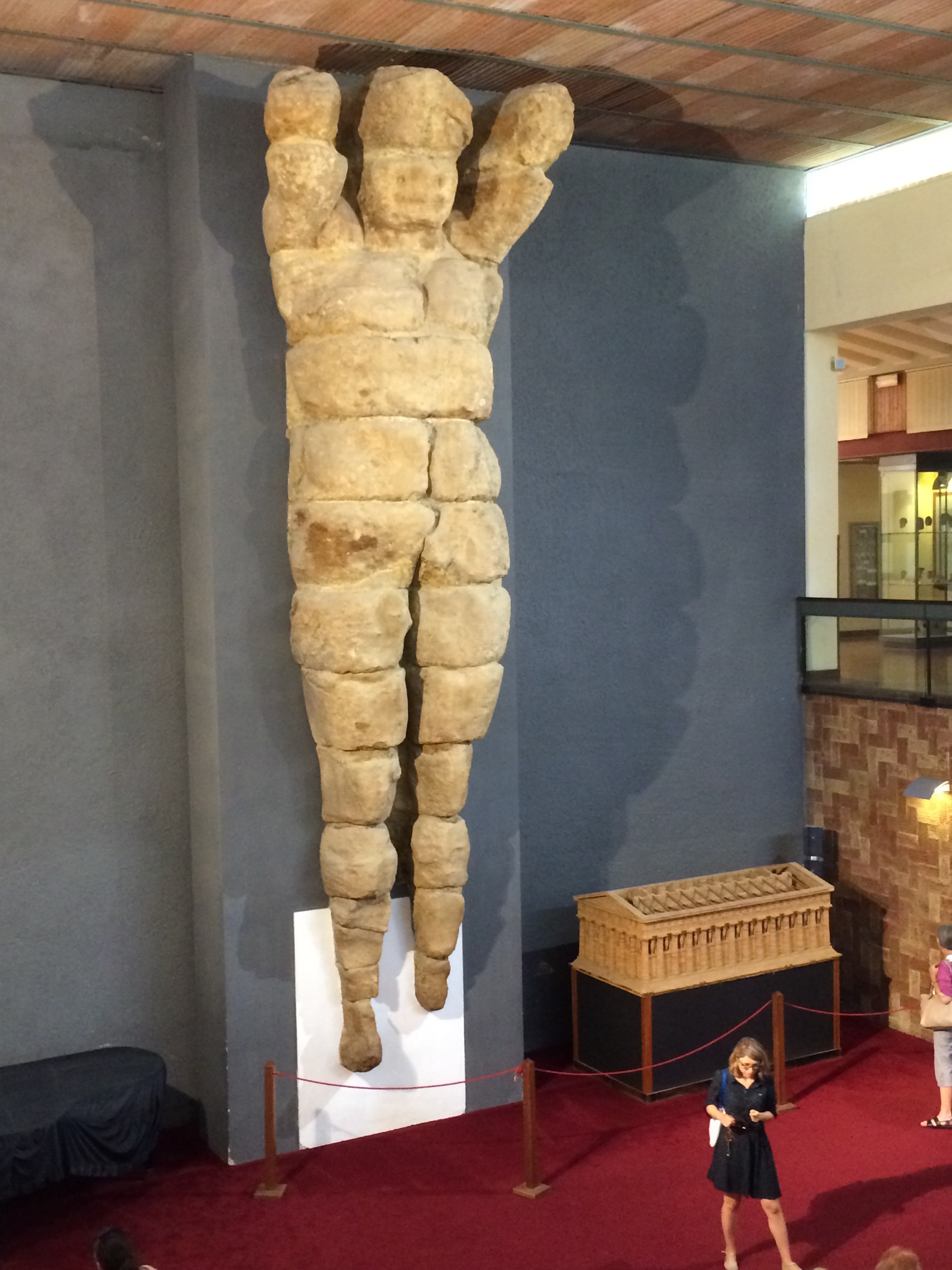 The Temple of Zeus or Jupiter which was the largest temple in existence at its apogee, but now lies in rubble as most of the stones were repurposed for other building construction. It was held up by 19 male and 19 female Telamons / Giants.