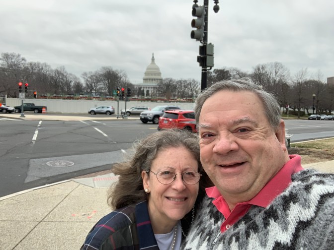 Sunday January 12, 2020 – We continued on South and had a lovely visit overnight in Washington DC with Jeff and Michelle Bannister and Michelle’s son – Lori – who was to leave the following day for a semester of architecture study in Florence Italy. A nice central Hyatt Regency Hotel on New Jersey Avenue near the Capital was our hotel and we were able to eat outside at a nice Mediterranean / Greek restaurant – Zaytinya (701 9th Street NW, Washington DC 20001 – +1 (202) 638-0800 – zaytinya.com.