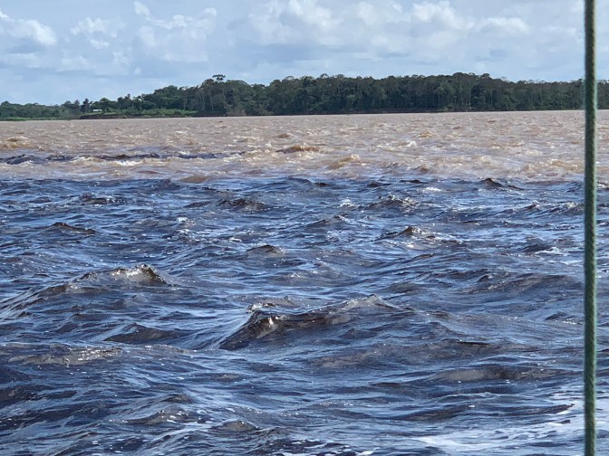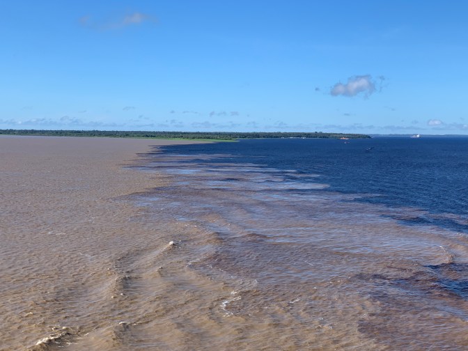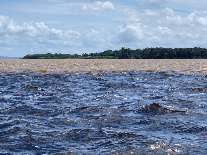 We sailed up the Rio Negro seeing the transition from the brown Amazon River to the black Rio Negro. We saw this up closer when we took the private boat ride but it is best to mention this phenomena now.