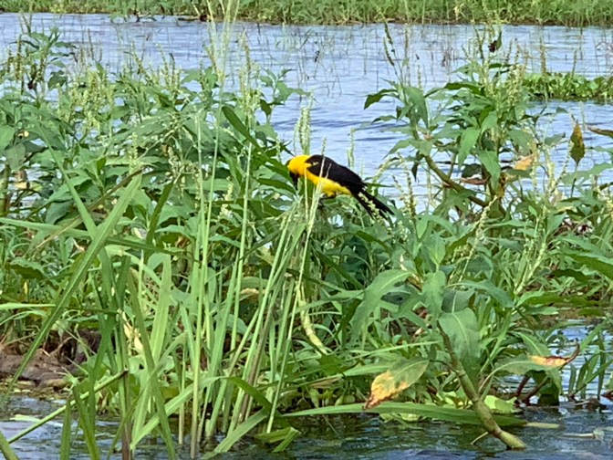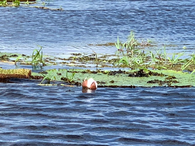 We then proceeded up one of the tributaries of the Rio Negro to see how the riberinnhos or River people live in their floating homes along the sides of the river. While on this tributary, we were able to see up close and personal the amazing water lilies that grow up to 3 feet in diameter and are called the Victoria Regia species. So named because a German explorer who was in the service of Queen Victoria so named them after her Majesty. We were also able to see some exotic birds, one bright yellow and black and the other a pair of birds with a nest on top of one of these lilies and were able to see three small eggs.