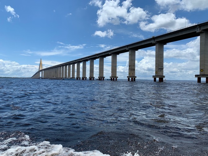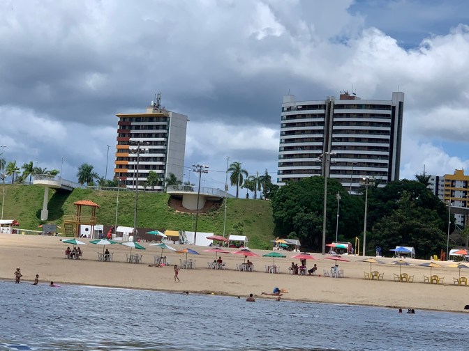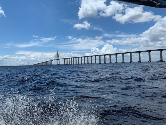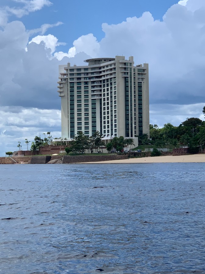 We returned to our boat and took a half hour boat ride back to the Rio Negro and past our ship up river to the relatively newly constructed (2011) Ponte Rio Negro which is 2 1/2 mile wide and connects Manaus to the fertile land on the other side of the river. We continued on to the Ponta Negro neighborhood with its upscale condominium residences and the beautiful golden beaches, before returning to the floating dock and our ship.