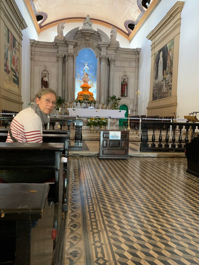Anne and I decided to head into town in search of a restaurant that the guide had recomended, but first went into the Cathedral – Nossa Senhora da Conceição on the Plaza Oswaldo Cruz.