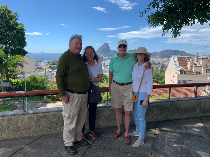 The full name of this State Capital, past Capital of Brazil (1763 to 1963) and second most populous city (6-7MM) is Cidade de São Sebastião do Rio de Janeiro. The world knows Rio as the center of (pre-Lenten) Carnaval which enlivens the city both day and night. Already we could see the Samba Stadium being readied and people in the streets already starting to get into their outfits as it is only a week away. São Paulo is the Country’s Economic center, Brasilia the Political center but Rio remains the cultural and international symbol of Brazil. While, unemployment is high and crime exists, particularly in the “Favelas” (shanty towns), it is still one of the most beautiful settings of a city anywhere in the world.