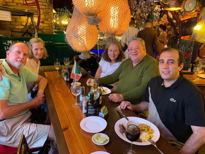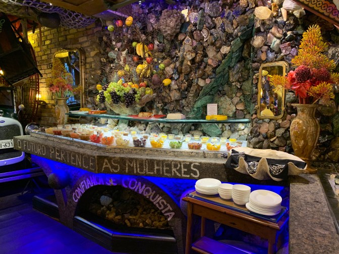 We then travelled to the Beaches – Ipanema and it’s neighborhood, Copacabana (missing Leblon beach). We had Lunch at Marius Degustare (Av. Atlântica, 290; Rio de Janeiro) a Rodizio of salads, feijoada, meat and seafood located near the 1914 Fort of Copacabana (now a military museum) on Leme beach at one end of Copacabana – https://marius.com.br/es A Pricey (US$50 pp all you can eat) but fun place with extraordinary decor. One meal there can fill you for the day.