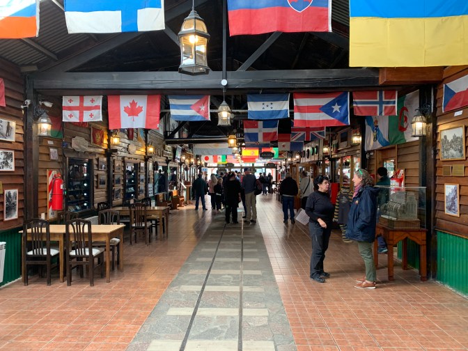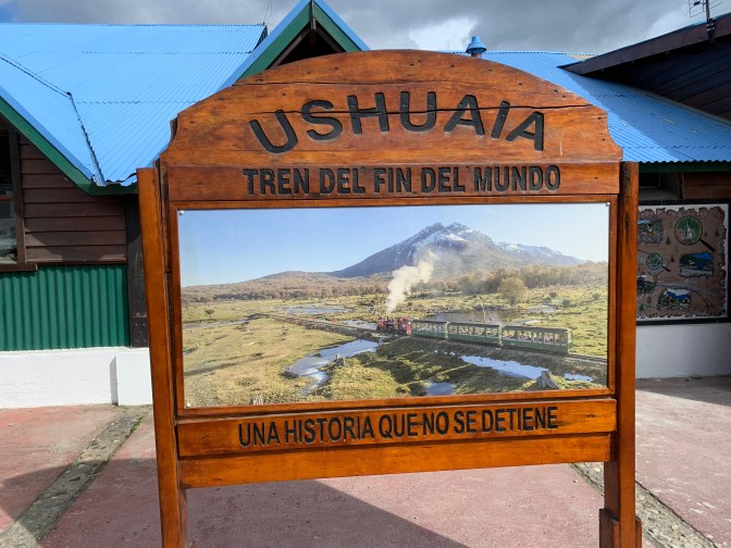 We stopped at the tourist train station (Ferrocarril Austral Fueguino) to see the history of the laying of the tracks by prisoners and the various engines and cars that have been used over the years.