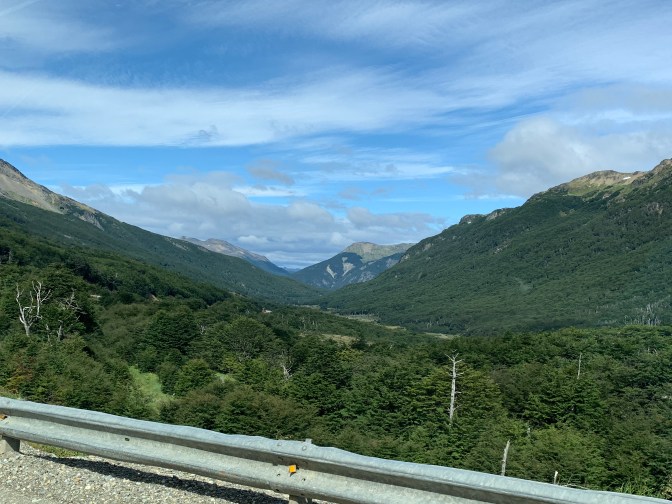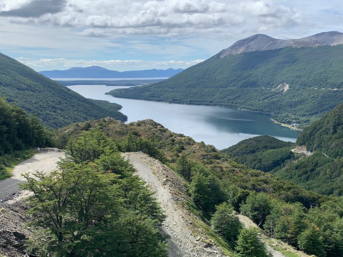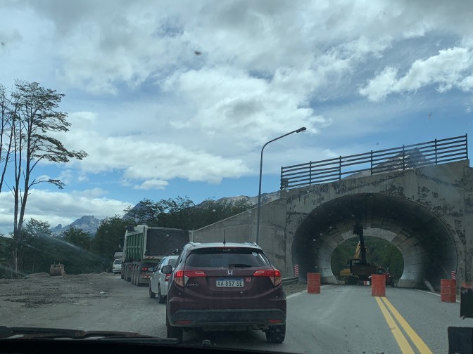 As we continued over the pass we passed the “Cerro Castor” (Besver mountain) alpine ski resort (furthest south in the world) that was being repaired. The bridge under which cars travel and over which skiers descend had holes in the corrugated roof so were being replaced.