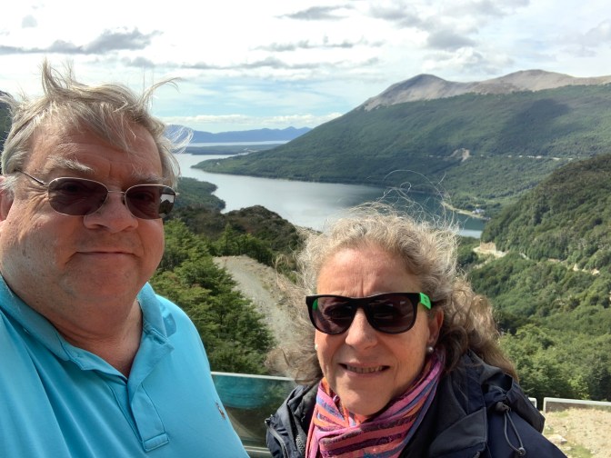 We docked, port side to dock pier with cargo ship opposite about 7:30 AM. We were met by our car, guide and driver – Perla Rojas; phone +54-92901-46-57-44; email perlaush@hotmail.com – Excellent guide and driver who has been guiding for 30 years in Ushuaia. She works during the Summer season (October to March) almost every day in English 50% and Italian 50%. It was a happy surprise for her working with us in Spanish. Apart from Tourism, both National and International, the main work is – 35% of the population work in Government and 35% in Industry making TV, Washers, Microwaves etc.