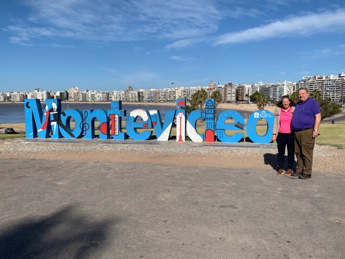 There was the mandatory photo stop at the large sign (5 ft high and 10 yards long) of “Montevideo” on a promontory with a great view of the city behind.