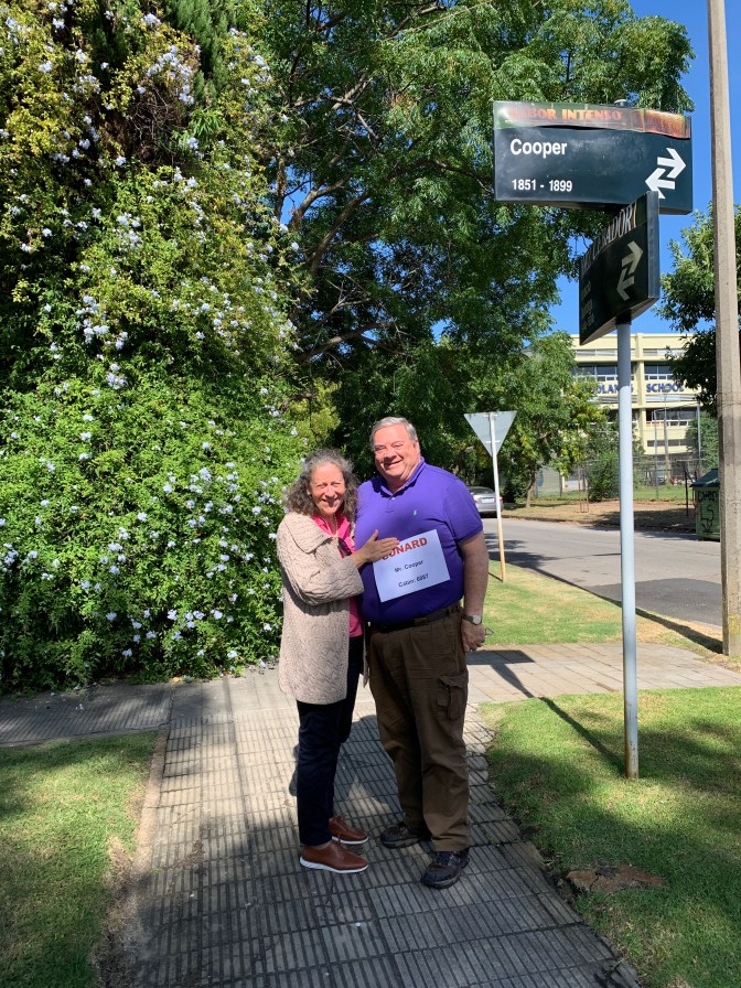 Our next stop was at the Carrasco hotel and Casino, now operated by Sofitel, a five-star luxury hotel with a very elegant foyer with Stained glass windows in the roof, full sized horses (from the days when people from the town would come on horseback to the nearby town) and a beautiful view. We toured the Carrasco neighborhood which is an exclusive area of town filled with large homes one of which is called “Cooper Street”, so we had to stop and take a picture.