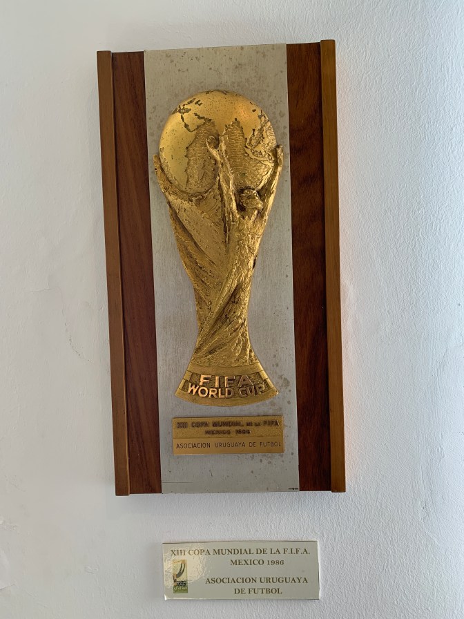 We then proceeded to the 80,000 seat football soccer stadium which held The World Cup. It now also houses a museum to football soccer with a tribute to all of the great Uruguayan players and in particular to the Olympics which they hope will be there at some point. In 1930 they were the first World Champions, so there is a display of all the cups and stars of the game.