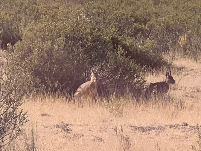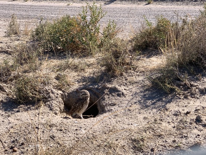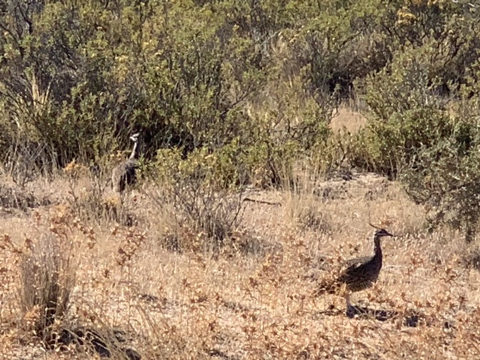 Leandro was amazing as he found a series of animals that to us blend into the semi-desert surroundings. Rainfall is about 10 centimeters (4 inches) of rain a year! Other land based animals we saw were Mara – a large rabbit like animal that is very rarely seen; Choique Miañu Patagonico / Abestruz / Darwin’s Rea, an ostrich like bird and Piche (Hairy Armadillo) and even an owl about 1.5 ft high that makes it’s nest in holes in the ground. The one we saw (at 10AM) was standing outside his home looking around to see what was going on. Amazing as they are usually nocturnal.