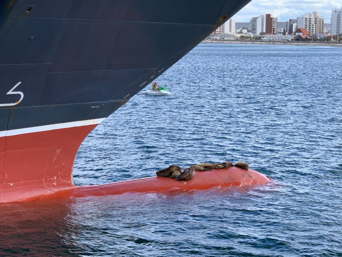 As we returned to the ship we found seals resting on the bulbous structure protruding from the ship’s bow that breaks the water.
