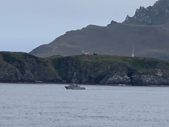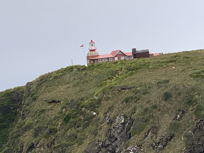 When we got there The weather was overcast light rain and bumpy. However, when we got closer to Cape Horn, the weather lifted the seas became like glass and we had great visibility. The captain stationed the ship in front of the lighthouse, lighthouse keepers house and Cape Horn monument and did a full 360° pirouette so that everybody on the ship could get a good view of the “Bottom of the World”. It was truly spectacular and we were able to get many pictures of this barren rock at the very bottom of South America, which led many sailing ships to their watery Graves! We were even able to see and wave at the lighthouse keeper his wife and three children, the last of which was born two months ago on the island. The Chilean Navy have the lighthouse keepers spend one year at the station before they are replaced. A truly inhospitable place. We then travelled slowly all the way around Cape Horn returning the way we had entered the area towards our next port.