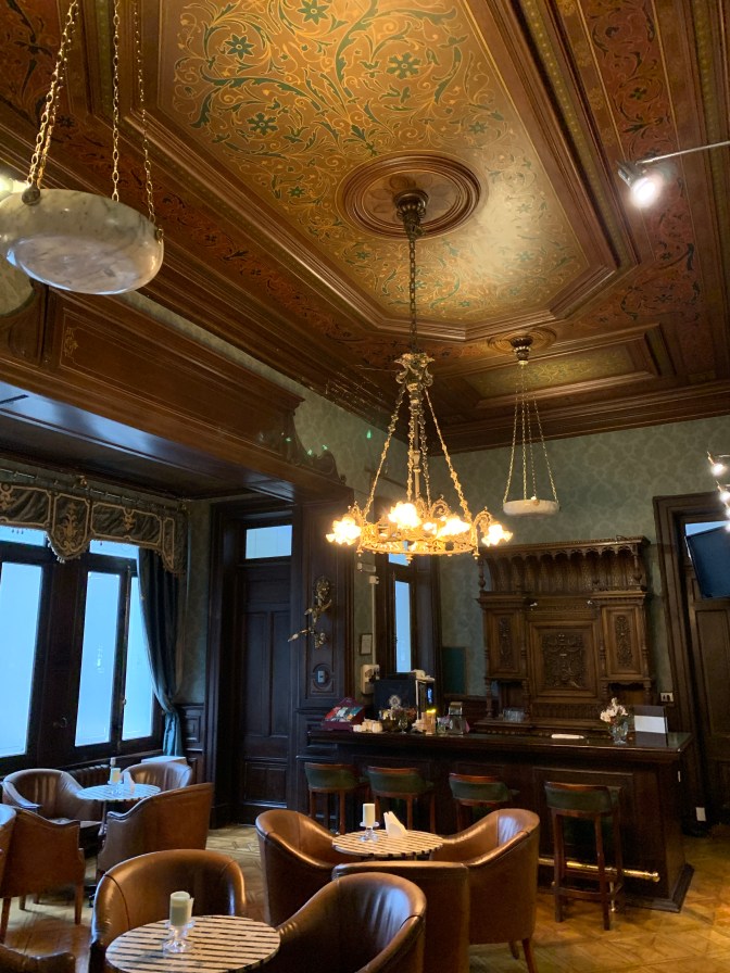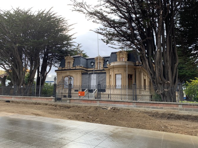 The “History Guide” then told us in detail of the two wealthiest families in town the Meléndez and the Braun’s each one trying to outdo each other and build large mansions on the main square next to each other. The José Mélendez (with his wife Maria Behety arrived from Uruguay in 1876 – He died April 24,1918) Palace has a tower so he could see when ships were arriving to go and offer them provisions. They were merchants initially from Spain that worked in different aspects of providing supplies to ships, transportation at all the different aspects of trade in that part of the world. At one point in time the son of one family married daughter of the other and they built their own palace half a block away. We were able to visit the Braun palace which is now a luxury hotel – José Nogueira Hotel. The Mélendez mansion is now the Chilean Navy Officers Club There is now a smaller house in between the two that is also part of the Chilean Navy.
