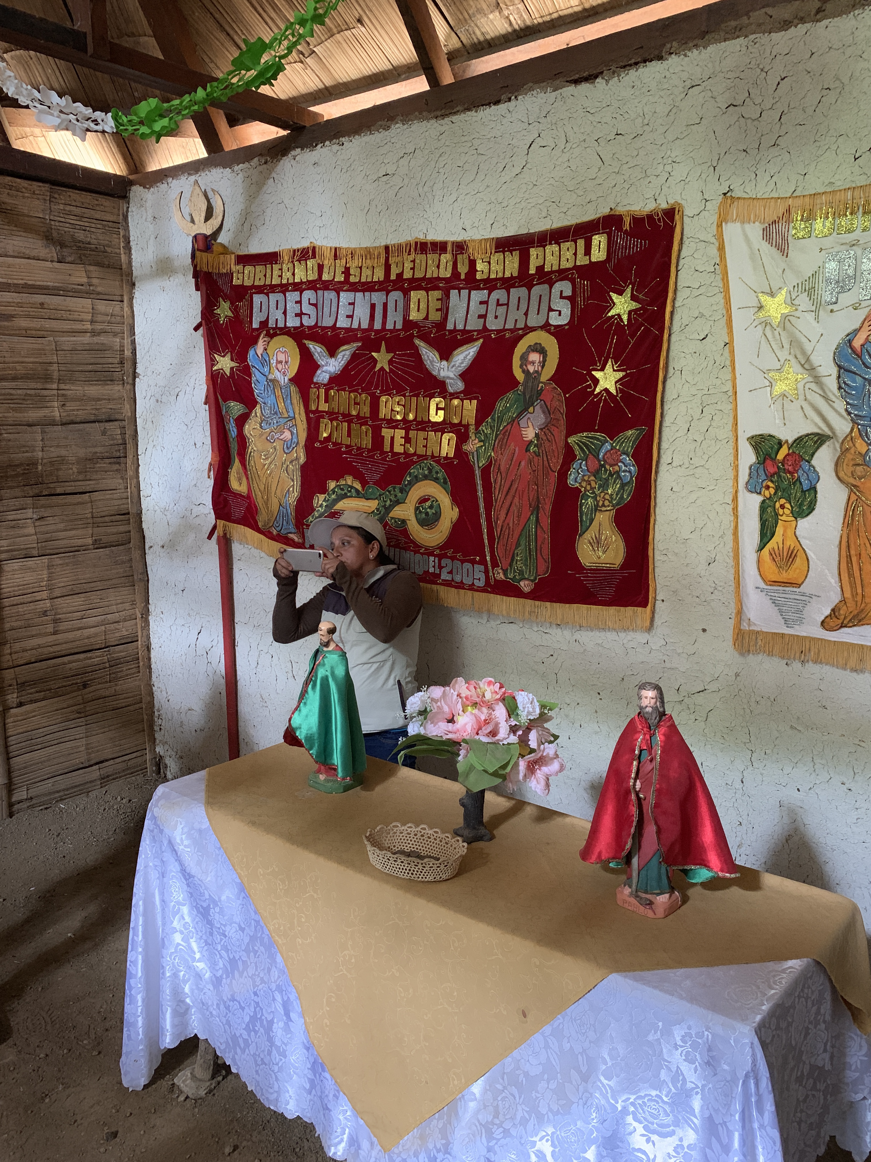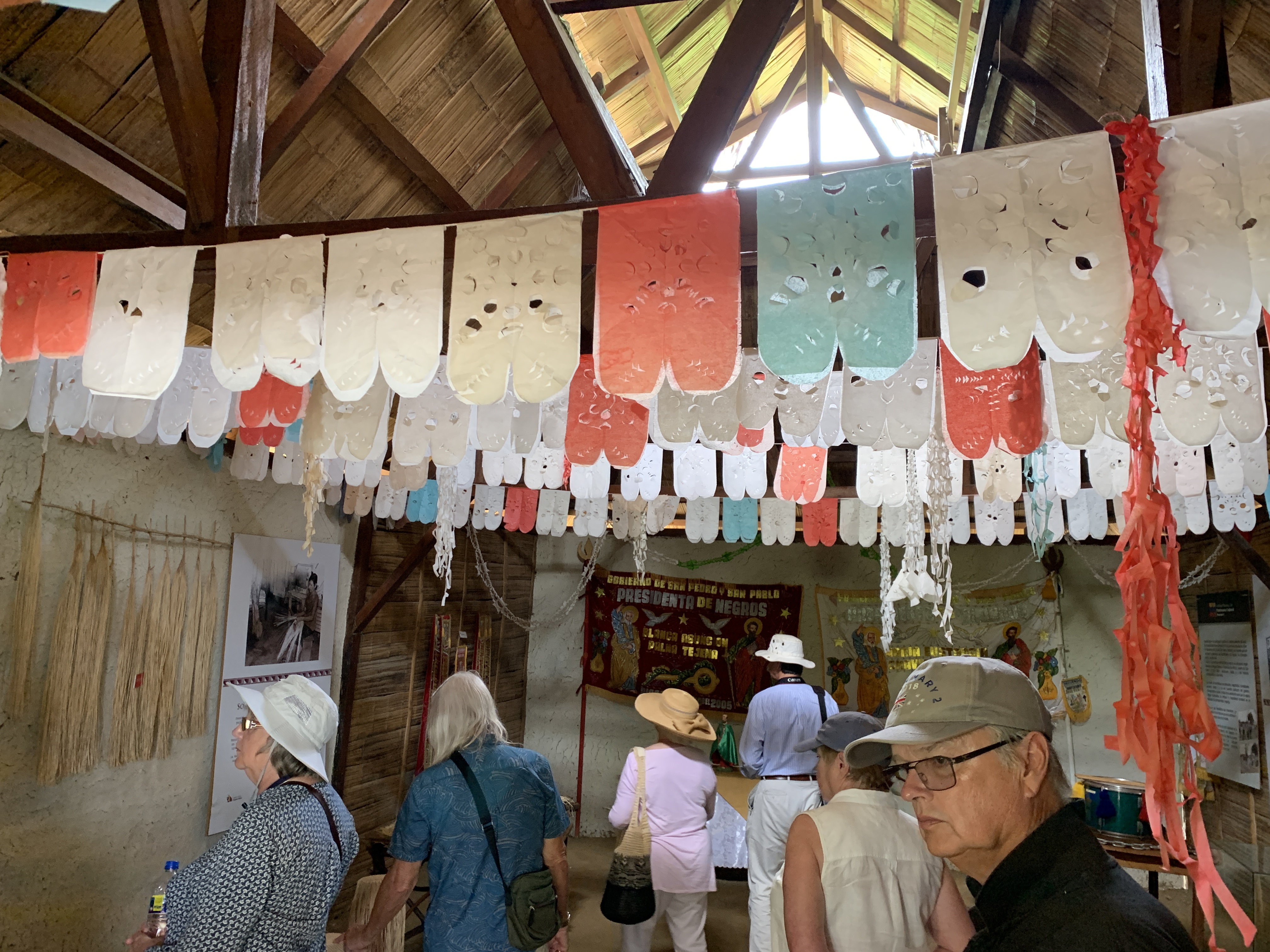 We then were ushered into three separate banana leaf roofed wooden huts each one set up as an educational demonstration. The first reflected more the current area residents and the importance of St. Peter and St. Paul to the local life.