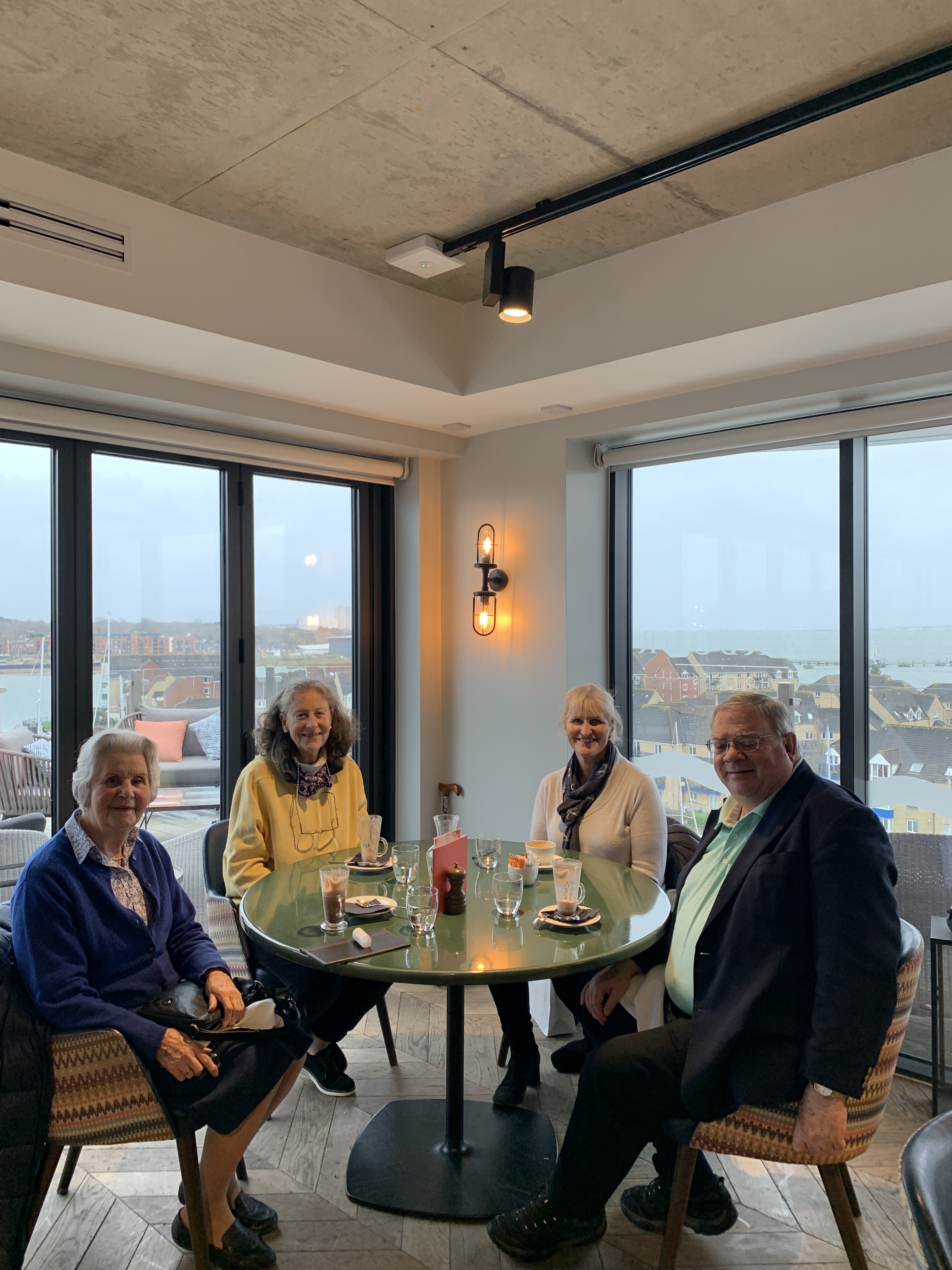 After a leisurely breakfast watching all the passengers departing, we eventually meandered on shore as Cousins Judy and Suzanne had kindly agreed to meet us for lunch in Southampton at noon. We were out about an hour early and they had arrived an hour early, so we were able to connect and head to Bar Harbour 6 restaurant on the top (6th) floor of the Harbour Hotel. After a drink of Tea and coffee, we sat at a perfect corner table overlooking the ships and entire harbour. A perfect spot chosen by Suzanne and a terrific meal with lots of conversation and catching up. Thank you both for making the trek and for a fun day. As we headed out, the heavens opened and a rainstorm greeted our return to the car, bravely managed by Suzanne and thence back to the ship.