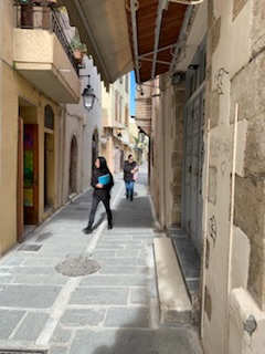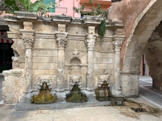 Our next stop some 20 minutes away was the old town of Rethymnon with it’s venetian era harbor and narrow winding streets including vestiges of a Minaret when the church was converted into a Mosque during the Ottoman occupation and is now a conservatory of music. After wandering around the town and getting a bit lost, we ended up in a local taverna for a Greek Coffee and a baguette with olive paste, eggplant and feta cheese.