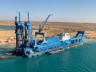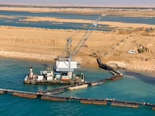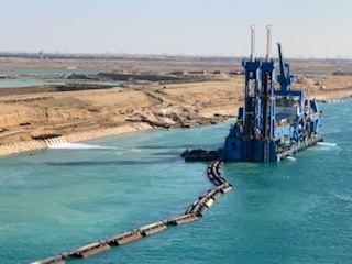 However, the next few pictures show the dredging efforts, sucking up the sand and moving it through large tubes which is part of the widening of the canal at the Suez / Red Sea end.