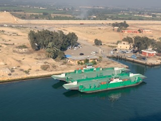 Some of the monuments and structures visible from the ship along the canal are (going from North so South):- 1) The Suez Canal of Japanese Friendship Bridge (1995) joins the African side to the Asian side of the Canal. 60% was financed by the Japanese and the towers are built in the shape of Pharaonic Obelisks. It is 70 Meters above the waterline.
