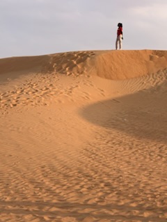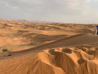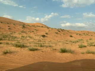 The young driver got in behind the wheel, and with a chubby, coughing lady from the Canary Islands, in the front seat and us in the back all duly masked, we were ready for the adventure. Unfortunately the driver, possibly from Sri Lanka either could not speak English or did not want to communicate and the woman in the front seat, who despite us attempting to talk to her in her native Spanish language, decided that she also did not want to communicate. So we were subjected to a silent vehicle, and worse, we knew not what was to happen, what were stops, what to expect. Incessant Arab music came from the radio, the driver with headphones attached to his mobile phone and the music getting louder and louder when we got to the dunes. We sped out of the city, more or less in caravan, suddenly stopping at a petrol station in the middle of the desert. 10 minutes the driver said. We got out and asked another driver what this stop was all about? A toilet break he said.