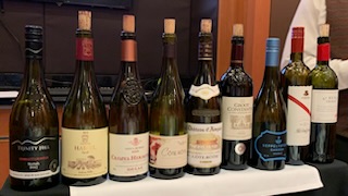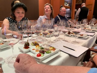 Roger was going through a very interesting talk and wine tasting with 8 other guests seated around a table, on Shiraz or Syrah. Both are from the same grape and the word Syrah originates in Persia (Iran today). Today in South Africa and Australia the word Shiraz is mainly used whereas elsewhere it is Syrah. The grape itself after DNA analysis at University of California at Davis in 1998 comes from the Rhône with the “father” being a now extinct grape called Dureza and a “Mother” still in existence but in very minor amounts – Mondeuse Blanc. One often thinks of it coming from Australia / New Zealand as in 1836 James Busby took it to Australia. We started off with a very light Syrah Gimblett Gravels, Trinity Hill, Hawkes Bay, New Zealand 2017 founded by John Hancock, funded by Robert & Robyn Wilson in 1993. The second was a much bolder and one I greatly enjoyed – Syrah Clos de Gat Har’el, Judean Hills, Israel 2014. This wine is 90% Syrah and 10% Cabernet Sauvignon. Of interest is that most vineyards around the world are between 30 and 50 Latitude North and South and the best are ones with a larger temperature difference between day and night and those on more rocky and poor soil with poorer ones growing in more sandy soils. Obviously this is a generality and there are many exceptions. The third wine was Crowe’s-Hermitage Les Launes, Delia’s, Rhône, France which like most is 100% Shiraz. The next wine was another French one – Côte-Rosie, Domaine Pierre Galliard, Northern Rhône, France 2020. It is situated on the slopes and the vines grow in various soils. Up to 10% are co-fermented with Viognier which adds to the complexity and they do practice micro-oxygenation. The next wine from the same region was Château d’Ampuis, Côte-Rhône, E. Guigal, Northern Rhône, France 2014. It was founded in 1946 by Etienne Guigal in Ampuisin and in 1961, Marcel, the son took over as his father became blind. The grandson Philippe now runs the business. We then moved way from France to South Africa to taste the Shiraz made the the oldest and best known winery in South Africa, founded 338 years ago (1685) – Constantia. Shiraz Groot Constantia, South Africa -2018 which is situated near Table Top Mountain outside Cape Town. Of interest here is that when Napoleon Bonaparte was in exile from 1815 to 1821, the only wine he was allowed was that coming from this winery. Next we went to the Adelaide area in South Australia for the last three. If you have lost count by now, there were 9 wines we drank!!! Shiraz Seppeltsfield, Barossa Valley, Australia. In 1850 Joseph Seppelt purchased 158 acres for £1 an acre and produced wines and fortified wines for “medicinal purposes” for the Australian Hospitals as doctors believed that those in hospital needed Brandy to help patients recover from their ailment. A practice sadly is no longer maintained! The last two I felt were the best together with the Israel wine and this next one come with a red stripe across the bottle. Shiraz The Dead Arm, d’Arenberg, McLaren Vale, South Australia. Many Shiraz wines have interesting names, but this one comes from the fact that vines all over the world can be affected by a fungus Eutypa Lata that renders one branch / side / arm dead. It has to be cut off of the fungus arrested, however the other side of the plant produces good, albeit low volume, fruit with intense flavor. The final wine, which is probably the best of all comes from the famous Penfolds vineyard in Australia. Shiraz St. Henri, Penfolds, South Africa. It was founded by an English doctor – Christopher Rawson Penfold born 1911, graduating with his MD. In 1938, he and his wife Mary went to Australia in 1945 and produced fortified wines for his medical practice. The wine making took off particularly after his death in 1970 when is wife took over. In continued on with their children and grandchildren and today produces some of the best wine in the region. One barrel may be worth AUS$ 250,000! All in all a very enlightening 2 hours although after 9 glasses of wine with just some small but excellent “amuse bouche” type food, we had difficulty making it back to our cabins!!!