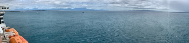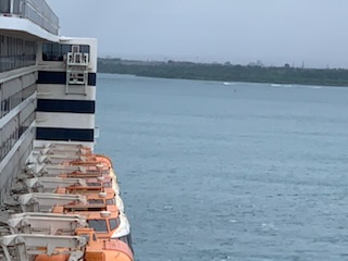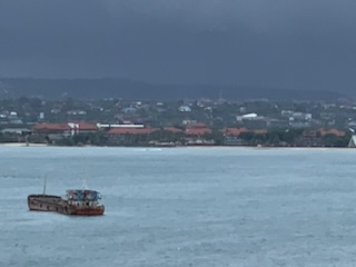 Great excitement, today we see that enchanted island of Bali, OR NOT!!! A big disappointment as the winds and waves were too dangerous to lower the tenders (life boats) and take passengers on the 45 minute ride into the island. We were all ready, tour tickets in hand and rain gear, as the captain had warned that there was likely to be rain. As we were finishing breakfast, the Captain came on the public address system to say that he had reluctantly made the decision that it was not safe to go ashore and that his primary job was to our overall safety. After the disappointing party in Singapore and the general feeling of anger aboard by many of the guests after being closed up for two years with COVID, we feared a mutiny. Some complained, but most, after walking on the deck, realized that this was a wise decision. We enjoyed another coffee and started to plan out our day. The Entertainment staff rapidly put together an alternate program with a couple of lectures and alternate entertainers for the evening as the billed entertainers were stuck on Bali and could not get on. The Indonesian authorities aboard, did get off and the Australian authorities, that will process us on board for immigration and customs, were able to get aboard. Apparently one couple who we assume had medical issues were also able to get ashore, but the numbers on to and off the ship were but a handful. This however took the better part of the day, so we were not underway to Darwin, Australia, our next port of call until the early afternoon.