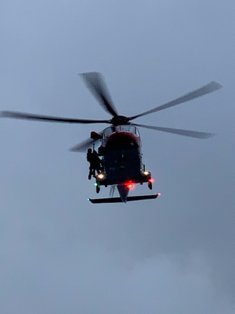 Sunday today saw Anne attending early Mass and Roger the Captain’s service at 10 AM. We went to three lectures, enjoyed lunch and worked on reconciling accounts and the big excitement was a medical emergency. The Captain announced that there was a medical emergency in the Verandah restaurant followed soon thereafter by an announcement that people should not go out onto the open decks and the air / sea rescue helicopter would soon be arriving from nearby Cairns to evacuate the patient. The helicopter arrived about 5:30pm just outside our cabin window and came over the roof of the cabin at right angles to the ship, but as the ship was traveling forward at 18 knots, the helicopter had to also be traveling sideways at exactly the same speed. Furthermore, it had to also travel forward to hover over the ship. It let two people down and then backed off, traveling some 50 yards off the ship’s side but keeping “geostationary” / traveling laterally at the same speed. Once the person was secured to the basket, it came back over the ship, picked up the patient and flew away, however it then returned a second time, presumably to pick up the patient’s family. We all hope that the patient will be OK and well taken care of by the Australian doctors.