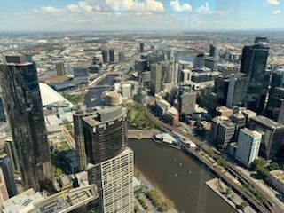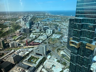 Back on the coach we drove past the Melbourne Cricket Ground stadium which seats 100,000 people, the tennis venue, the “Rectangle” (Rugby, Aussie Football etc) games stadium (as opposed to the Oval Games Stadium (like Cricket). Our final stop in the heart of the CBD where we went to the top of the tallest tower, Eureka, to the observation sky-deck, where we got a truly spectacular view of the city cementing in our minds the various areas we visited on the coach.