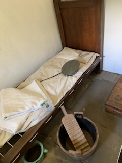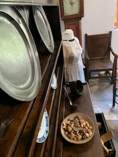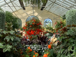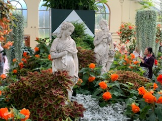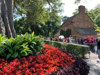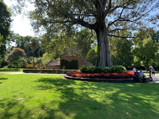 The next stop was at the Fitzroy Gardens, a 26 hectare garden space, set aside in 1848 and became the Fitzroy Gardens in 1862. There are many grassy areas, trees and the area we visited has two main features as well as the information center and facilities. The two places are the Conservatory (greenhouse) with a spectacular array of colorful plants providing a true optical oasis amid the sea of gree (grass) that surrounds the building. Magpies roamed the Gardens. The other feature was “Cook’s Cottage”. This was constructed in 1755 in the town of Great Ayton in England and was the home of the parents of Captain James Cook. Cook mapped the coast of Australia in 1770 from Pt Hicks in Victoria to Possession Island in North Queensland. In 1934, the cottage came up for sale and a wealthy local philanthropist bought the cottage, had it dismantled brick by brick and reconstructed, together with its kitchen garden in Fitzroy Park. Three gentlemen in period dress showed us through the small home and gardens and told us the story of the family.