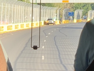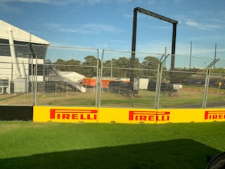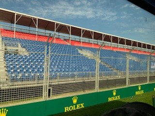 The first fun part of the day was when we turned a corner and started driving on a ring road around the lake that is being set up for the Australian Gran Prix Formula One car race on April 2nd. The stands for the public, fences and stopping areas as well as pit stop were all being set up and signed for the usual sponsors were already in evidence. We drove for a couple of miles around the track which gave us a fun idea of what the drivers would be going through at 300+ KPH (we were doing 60 KPH at the highest speed!!!).
