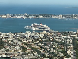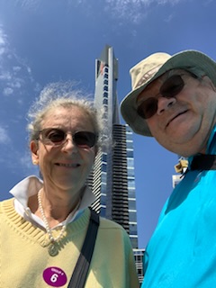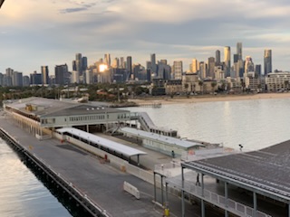 Even though overnight I had Zoom meetings, so with 3 hours sleep, we were up early to see the entry to the port of Melbourne. A very narrow opening to the sea, followed by a meandering river type seaway, leads to the second largest bay and harbor in the world. We moored after doing a 180 degree turn so as to have the bow facing the departure direction, on the port side, at the modern cruise terminal and thus the “other side” had the main view of the city, next to another smaller cruise vessel – the EUROPA (Hapag-Lloyd). We were excited to see this 5.8 million population city that seems to be driven by sports and the arts. A planned city (by Robert Hoddle) with the Central Business District (CBD) being organized in a rectangle with very wide streets in an exact grid pattern and a multitude of parks. Many high rise buildings could be seen from the ship in the heart of the CBD. As Melbourne is on a flat area it spreads out tremendously and, we felt in it’s own way, very charming with very pleasant people.