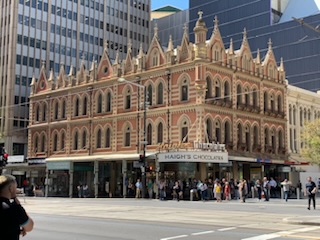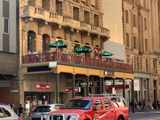 After the enjoyable visit to the Museum, we wandered the streets looking at different things and eventually settled on a restaurant on the upper floor of a building overlooking the street. It turned out to be a terrific find as it was an Irish Pub and as it was St. Patrick’s day, we enjoyed some pints of Guinness, a terrific lunch and watched the world go by below us as the pub got filled with locals. We were the only non-locals in the place. Definitely a place to go back to. It was the home of the South Australian Tattersalls Club and we were in the historic Tattersalls room established in 1917. It is also known as Harry’s Balcony Bar on Grenfell (www.harrysongrenfell.com.au; Phone +08-8231-3951; located at 12 Grenfell Street, Adelaide, SA 5000) and below was Jimmy’s Bar and Grill. The building was established in 1879.
