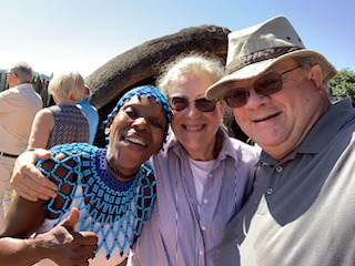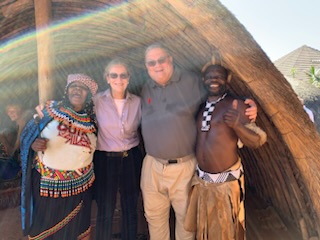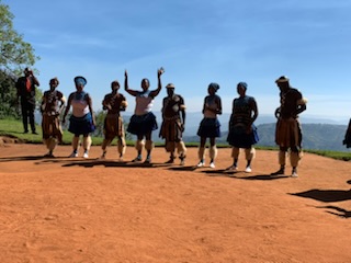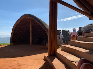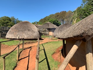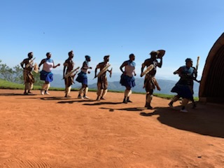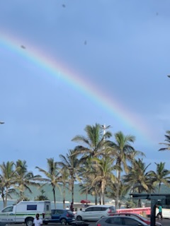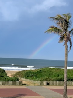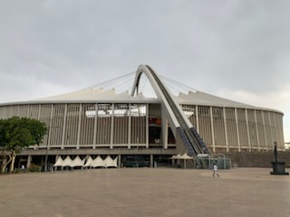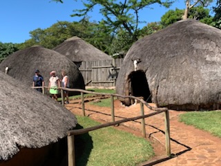 The afternoon tour – Sights of Durban (coach 19 – guide Cindy) gave us an overview of the city. It was mainly driving around seeing the two colonial buildings: Post office and City Hall; and seeing both the affluent as well as poor sections. The local market with it’s food stalls and basic clothing, was reminiscent of typical markets in third world countries with rubbish on the floor and yet there was a buzz of excitement as people scurried from one to another stall to get ingredients for the family meals. We always enjoy these markets as they give a flavor of how the local everyday people live. We also were taken to the top of a hill to get a panoramic view of the city. One of the stops was at the very impressive Football (soccer) stadium dedicated to Moses Meheki Mncane Mabhida (1923 to 1986). He became a communist and community organizer then was active in the trade unions serving as the first Vice President of the South African Congress of Trade Unions (SACTU) . He was active in the ANC becoming a local leader before going international. He then started the military branch of the ANC and was active in the intelligence arm. He died of a heart attach in Maputo and was buried there for 20 years before being returned to Kwazulu Natal to be buried in 2006 in the Herro’s Acre of the cemetery in Pietermaritzburg, a suburb of Durban. Opposite this stadium is the Rugby stadium and the athletics track keeping all these sporting venues in the same area. We also drove along the golden mile due to the color of the sand, where there was a fabulous rainbow over the Indian Ocean, with local vendors selling beach related clothing and drinks, food etc. A children’s park with games and a cable car was shut down as a recent major storm brought the ocean waves over the park, destroying the mechanisms, electric motors and rides, which are yet to be repaired. We passed the Suncoast Casino and hotel complex which covered the equivalent of several city blocks.The guide was somewhat disparaging of the place and obviously had some sort of bias against the place as she repeated in different ways – “Don’t go in there as you loose all your money and everything”. A sign outside which was interesting was: “Black Cardholders” with a white arrow on a black background pointing to the left; and another arrow pointing to the right on a yellow background saying “General”. Reminiscent of Apartheid! The guide who we estimate in her 20s was quite explicit and talked a lot about marriage practices in the Zulu people. Again we assumed she was of marrying age and either looking or recently married. She spoke of the rituals performed at puberty of a girl moving from child to womanhood where the female elders of the family would take her off for a week, bathing her in a sacred river and telling her the “facts of life”. Further explaining the 3 day marriage ritual, the polygamy rules, as explained above, all very interesting.
