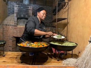 After 3 hours driving around the bush, it was time to get back to the food hut. We were so turned around that we had no idea in which direction to start to travel to get back to the main huts. Fortunately after some 15 minutes driving across the bush and some paths we got back to the “restaurant”, where they had prepared a very tasty meal with some good South African beer and wine. A really remarkable day and a truly exciting first venture into the world of Safaris. Lots more animals to see, giraffes, leopards etc, but those will have to wait for another time! After lunch we drove back the 1 1/2 hours to the ship to enjoy tea and the evening show which was the musical / comedian Foggie Flax. A good impersonation of sketches but not as funny as his first show.
