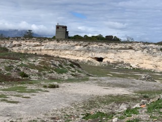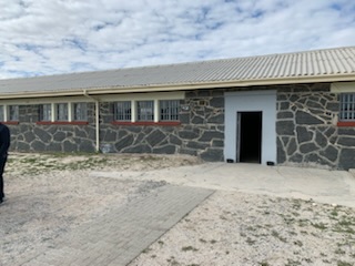 Craig prefaced our next stops by saying please silence your phones, make no noise and just take in the enormity of the place and it’s meaning. The first was the Limestone Quarry where Mandela and 32 high ranking political prisoners were put to hard labor every day. Mandela spent 13 1/2 years working in the limestone quarry 5 days a week. The philosophy was to exhaust the prisoners, as if they were physically exhausted by the end of the day, all they wanted to do was sleep and rest, thus requiring less guards. There was a cave in the limestone quarry where the prisoners were allowed to take their meal and to use as a toilet. However, over time they trained their minds to only use the toilet bucket in the morning and at night so as to not have to eat and undertake ablutions in the same place. An interesting phenomena occurred there, namely the 32 prisoners were from different walks of life, different countries and different philosophies. so under other circumstances they would never interact. Since they were all together in the “same boat” they talked and realized that they had a lot in common. The guards, who were there to stop the talking, opted to listen as they were learning a great deal and indeed “turned a blind eye” to the talking, never reporting it to the prison officers. The Ubuntu Philosophy – “I am because you are” – was born, meaning you and I can only exist together, if we help and respect each other. The chatter helped to keep them alive and helped the mental attitude. There is a bluestone quarry and other quarrels that were mined for the construction of the buildings on the islands, but he Limestone quarry was only for the most important prisoners. The prisoners noticed that the guards were changing their attitude which helped them understand that with peaceful discussions that are coherent and erudite, anyone can change their outlook. An important lesson for what was the African National Congress (ANC) and the future of the country. A very sobering and emotional time, imagining what it was like for those who during our lifetime were subjected to these inhumanities and the road to lead the massive change in the country. On February 11, 1995 the surviving prisoners came to Robben Island and placed stones at the entrance to the quarry in remembrance of the hard times they spent there.