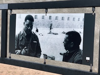 Our next stop was at a little yellow house inside a chain fence as well as two other buildings. We found out that the two other buildings were added later and were dog kennels, and that the little yellow house was where Sobukwe was held in solitary confinement always with two guards present. We now understood what the magnet was all about. Robert Mangaliso Sobukwe born December 5, 1924 and died February 27, 1978 was an Anti-Apartheid Activist and first president of the Pan Africanist Congress (PAC) from 1959-1963. He was married to Veronica and had 3 sons and a daughter. He was broken on Robben Island, after 6 years (1963-1969) of solitary confinement, and then sent home to Kimberly with his family under house arrest (1969-1978) until his death in 1978 from Lung Cancer. On Robben Island he was given certain privileges and was permitted books, magazines etc and studied and received a degree in economics from the University of London, while on Robben Island. He was a teacher and a lawyer and advocated for Africa for Africans (anyone that lives and pledges allegiance to Africa). He and Nelson Mandela were “colleagues” and whereas Mandela took to politics, Robert had always focused on the minds of children, focusing on education of the next generation. Although he is not well known his impact on the end of Apartheid was just as important.