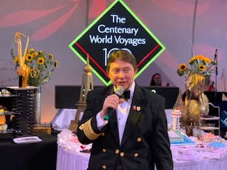 During the afternoon, we went through UK Immigration, and attended the last of the World Voyage Captain Cocktail Parties, where we had a fun time talking with the Deputy Captain – Matthew Nicholls – who will soon be taking over as Deputy Captain of Queen Anne, the new ship. The big excitement however was the entertainer for the party, the Singer Alfie Boe (Alfred Giovanni Roncalli Boe OBE) (www.alfie-Boe.com). He is a very famous UK singer born in Blackpool, Lancashire on September 29, 1973, of Irish and Norwegian descent, started out as a car mechanic and was plucked out of obscurity by a customer who heard him singing opera to his fellow mechanics, as he has an amazing voice that transcends Opera, to popular music, to Broadway musicals. He was trained in the Royal College of Music, the National Opera Studio and perhaps his most famous role was that of Jean Valjean in Les Miserables. We were luckily in the front of the crowd so were just a few feet away and were amazed at his vocal prowess. We look forward to his concert tomorrow. The evening performance was the very good Rock Band – The Bluejays who sung a nice selection of 1960’s music originated by Buddy Holly, Elvis Presley, Chuck Berry, Eddie Corcoran, Cliff Richard among others.