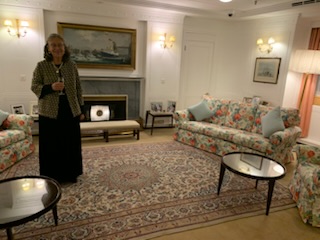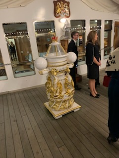The first lecture was Stephen Payne, QM2 designer, talking about HMY Britania. It was really fun to hear all about it and see his pictures as we had been at a reception in the Royal lounge and formal black tie dinner in the State Dining Room just a few months ago, last November. It brought back a lot of terrific memories. A few statistics – Length – 412ft 3 ins; Beam 55 Ft; Draught 15 Ft 9 ins; Displacement (Weight) 4,715 tons; Gross Tonnage (internal space with 1 ton equivalent to 100 Sq Ft) 5,769 or 1/26 the size of Queen Mary 2; Power 26,000 Shp; Speed 22.75 Knots; Range 2,000 Num at 20 Knots; Cost £2,098,000; nMiles steamed 1,087,623, in service 43 years and 334 days; 968 Port visits; 21 Officers headed by an Admiral; 250 Royal Yachtsmen; can accommodate 250 day guests; 56 State dinner guests and up to 200 patients as it was made with the idea that if there was a war, it could be used as a hospital ship. There were a total of 85 full State visits (2 per year on average) and when the Royal State visits were undertaken there was 5 tons of luggage and 45 Royal household staff. The Queen made 162 non State visits and 90 Commonwealth visits; with other Royals making 226 Non Commonwealth and 133 Commonwealth visits and 8 Fleet reviews. He indicated that he is working hard to develop a replacement and there have been various designs, his is like a mini QM2, and is trying to “sell” it to the government not as a Royal Ship but as a UK Flagship that can be used for Commerce and indeed pay for itself in the business it brings to the UK. It is estimated that HMY Britania brought some £4 Billion in trade and economic benefit to Britain during it’s service. As was often said, when a deal was discussed on the Yacht, it was virtually always a reality as those attending were struck by the majestic presence of the vessel.