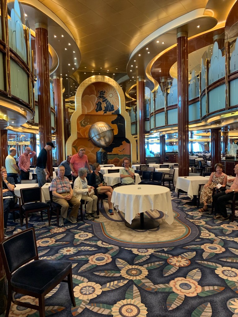 We each drove to Southampton and boarded the Cunard Queen Victoria for the V315 voyage making our way to our respective cabins 6078 and 6074 where we were greeted by our Philippine Steward Christopher. After lunch, we checked with the head waiter to assure ourselves that the message from the Head Waiter on the Queen Mary in April had been recorded correctly. Namely that the four of us were to be at one table and we actually asked for specific tables – 623/625; 627/620; 650/652; 648 – which are all in the rear window and slightly separated from other tables. We had been assigned two totally different tables so were glad we were able to get that sorted and ended up at an acceptable table – near the entrance. We unpacked and got together for a nice dinner, meeting our head waiter – Hector; Assistant waiter – Sam and Sommelier – Saje. We had pre-ordered the captain’s collection of wines so we were set for the trip.