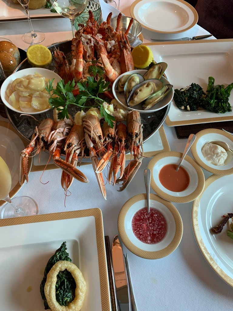 After lunch in the Golden Lion Pub, the afternoon saw some in the gym, others resting or on buisness calls. The evening was the first of the Gala nights with all dressing in long dresses and dinner jackets. It is always good to see people all dressed up for the evening and the entire ship is transformed into an elegant village. Admittedly not for everyone, but definitely for those of us of a certain age that like the finer aspects of life years ago. The show was the Cunard Singers and Dancers performing the good show “Be Our Guest”, always lots of fun. This particular troupe have only been together for a week, so it was their first show and thus a little off in some of the timing, but a fun show.