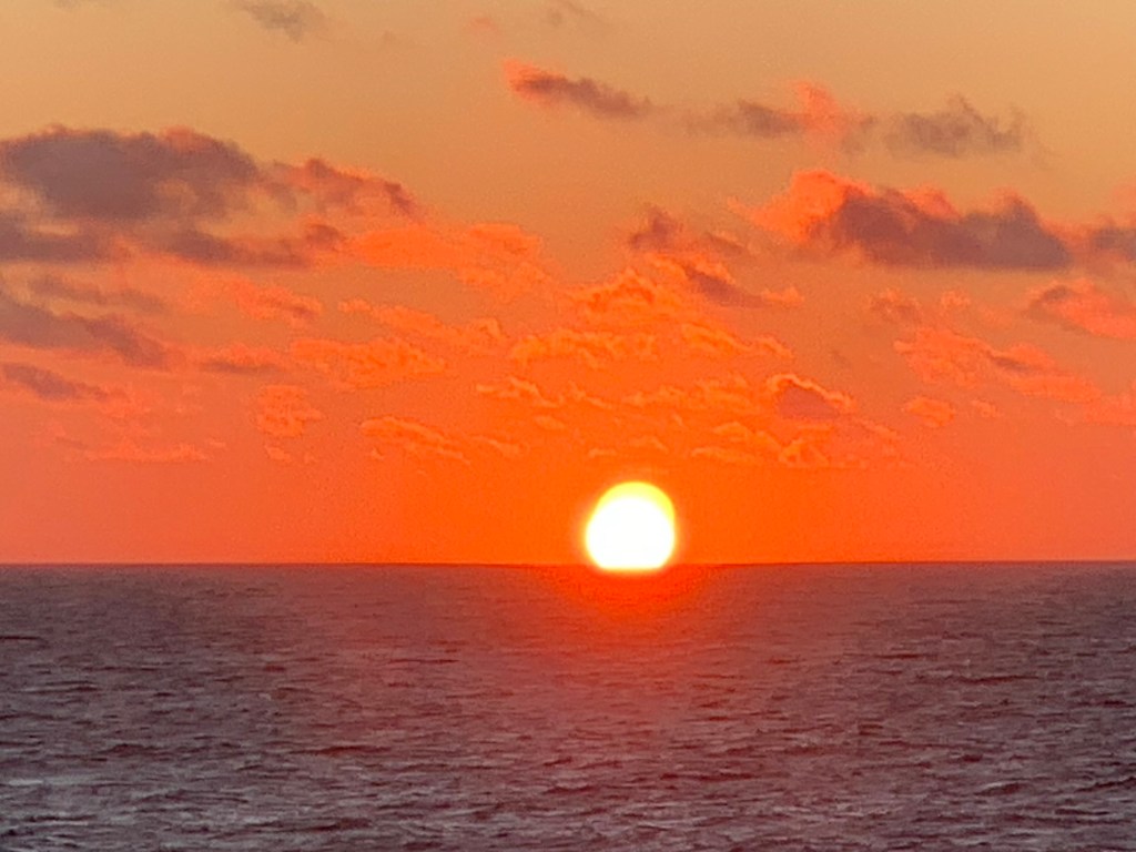 A restful day at sea with 2 lectures, gym and show. The lectures today were by the Astronomer / Artist Martin Griffiths who spoke of many artistic impressions of the moon over the centuries, from very primitive to modern day detailed maps. The named areas have varied a bit over time but today the one constant is that no area of the moon can be named for anyone that is alive to avoid people calling after friends and the jealousies that could arise. Most names for the bright side of the moon are positive like sea of tranquility, peaches etc, with those on the dark side are more negative. Mostly the moon is thought of as female although at some point it was considered as having a male face. The hare or rabbit of the moon was important to many cultures and the Navajo think of it as a deity and were seriously annoyed when ashes of humans were scattered there as it affects their deity. Another interesting fact that at one time about 120 years ago, Britain claimed ownership of the Moon!