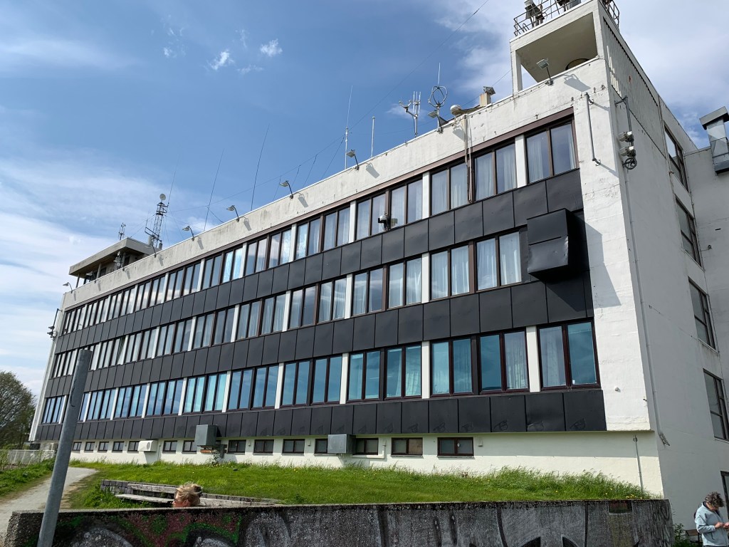Tromsø is an island that is mainly dominated by the northernmost University that holds classes in Norwegian, Sami and English and has about 15,000 students. One outstanding “photo-stop” with a great view from the island was next to the Faculty that trains ship Captains from fishing vessels to Cruise liners and everything in between. The day was slightly overcast but sunny most of the time. We boarded coach 4 for our tour of “Tromso Sights & Cable Car” with the Italian guide who is a System Engineering student at the university. He was excellent particularly given the adversity we were to encounter! We crossed the Tromsø bridge over to the Tromsdalen (second) area of the city, (the third part we did not go to – Kvaløya Island), where we headed to the Cable Car base station to board the Cable Car to the top of the Storsteinen to get a great view of the Island of Tromsø (Tromsøya). The third part of the city on the other side of Tromsøya is the island of Kvaløya connected via the Saandessund Bridge. Unfortunately, the winds at the top were too strong and for the safety of the passengers, it was closed for what was probably most of the day. At the bottom we did not feel the wind and at the time the wind at the top was still acceptable, but the forecast was for the wind to pick up and could leave us stranded at the top. Although disappointed, we all understood and the guide did his best to keep us informed and gave us lots of information.