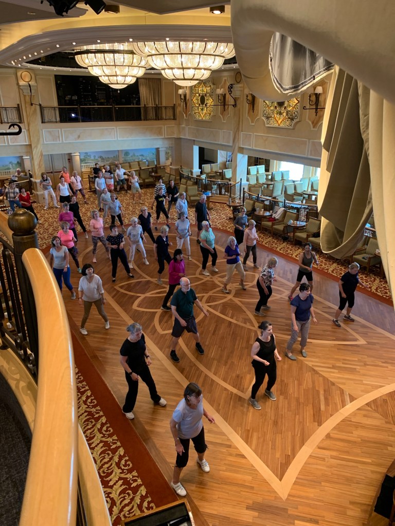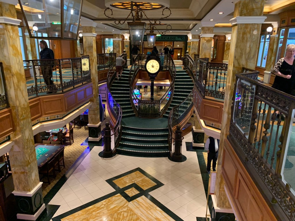 We planned on dinner in the Britania to see the Parade of Chefs, but sadly this did not occur. When we asked the head waiter, he said it was due to COVID and had not been done across the fleet since COVID started. We told him that last month on the Queen Mary II, there was the Parade of Chefs as we participated. He was surprised and not sure what to answer, other than to mention it when completing the survey. In the evening we went to the show – Top Hat – A musical play that had won 3 “Olivier’s” on the West End and was reduced to 1 hour. It is based on the music and Lyrics by Irving Berlin for the movie in 1935. It is the story of a man Jerry Travers, a tap dancer and actor, going after a society girl Dale Tremont, however the introductions being made by a married couple in which there was confusion as to who was the married man and who was the “available” one. All went well and the Cunard Singers & Dancers did a terrific performance.