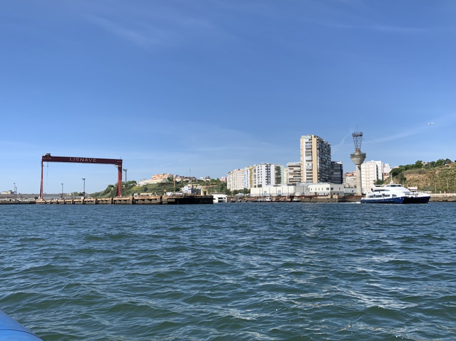 Today, we decided to do a different type of tour and 11 of us met outside the terminal and walked 1/2 mile along the river waterfront, to the embarkation point of our RIB aquatic transportation!!! A RIB, for those not familiar with the term is a “Rubber or Rigid Inflatable Boat” and is essentially a rubber dingy with a strong outboard motor and two columns of seats comprising some 5-7 rows. We put on our life jackets and took our seats, one behind the other (Anne and I were in the second row) and were given brief instructions by Faustino, the guide and sometime comedian and entertainer. First, when we get to the middle of the river everyone stand up and jump overboard in front of the oncoming ferry!!! I say “sometime jester”!!! Anyway, we soon took off and bounced over the wakes of other boats in the busy harbor, stopping first in front of the town and near our ship. This gave us the opportunity to see our ship from the water, which was great as well as to have him point out some buildings.