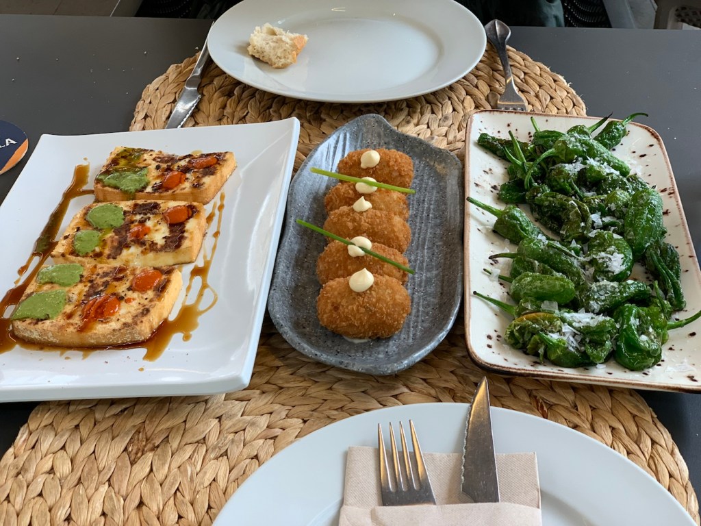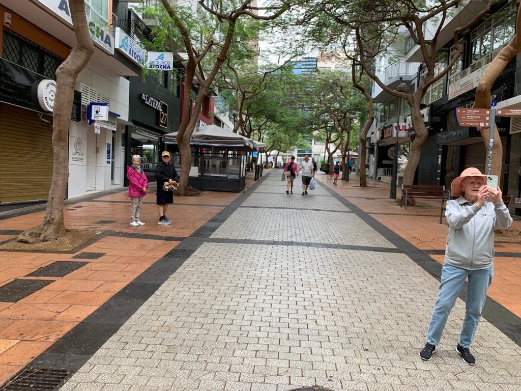 We eventually made our way back to the Main Street where we had eaten last time and found a different restaurant – The Eagle – (El Águila – Plaza Alferez Provisional, Santa Cruz de Tenerife 38002 España; +34-922-27-31-56; http://www.elaguilarestaurante.com )- and enjoyed tapas with some local beer. Total walking today was 9.4 Kilometers.
