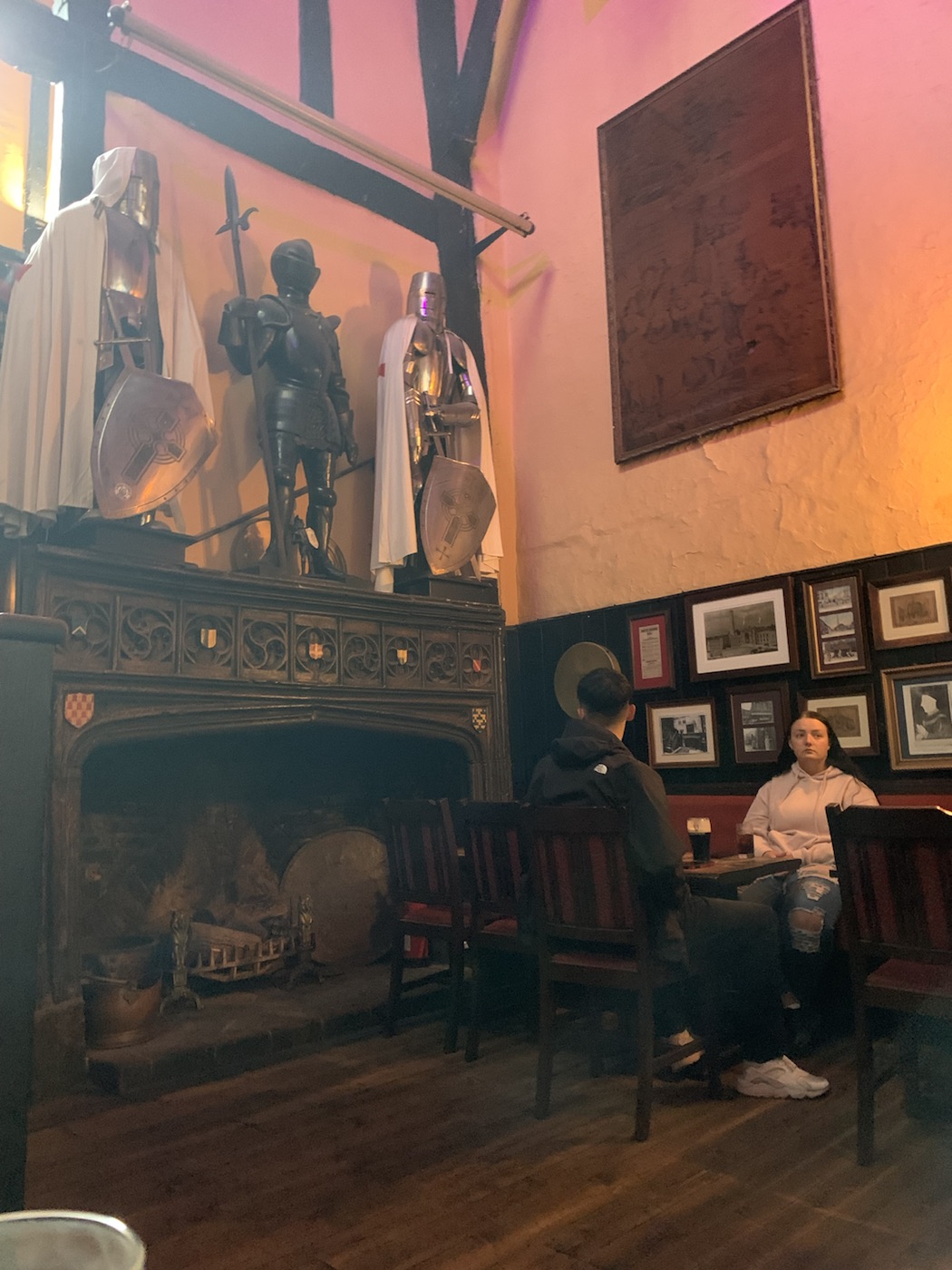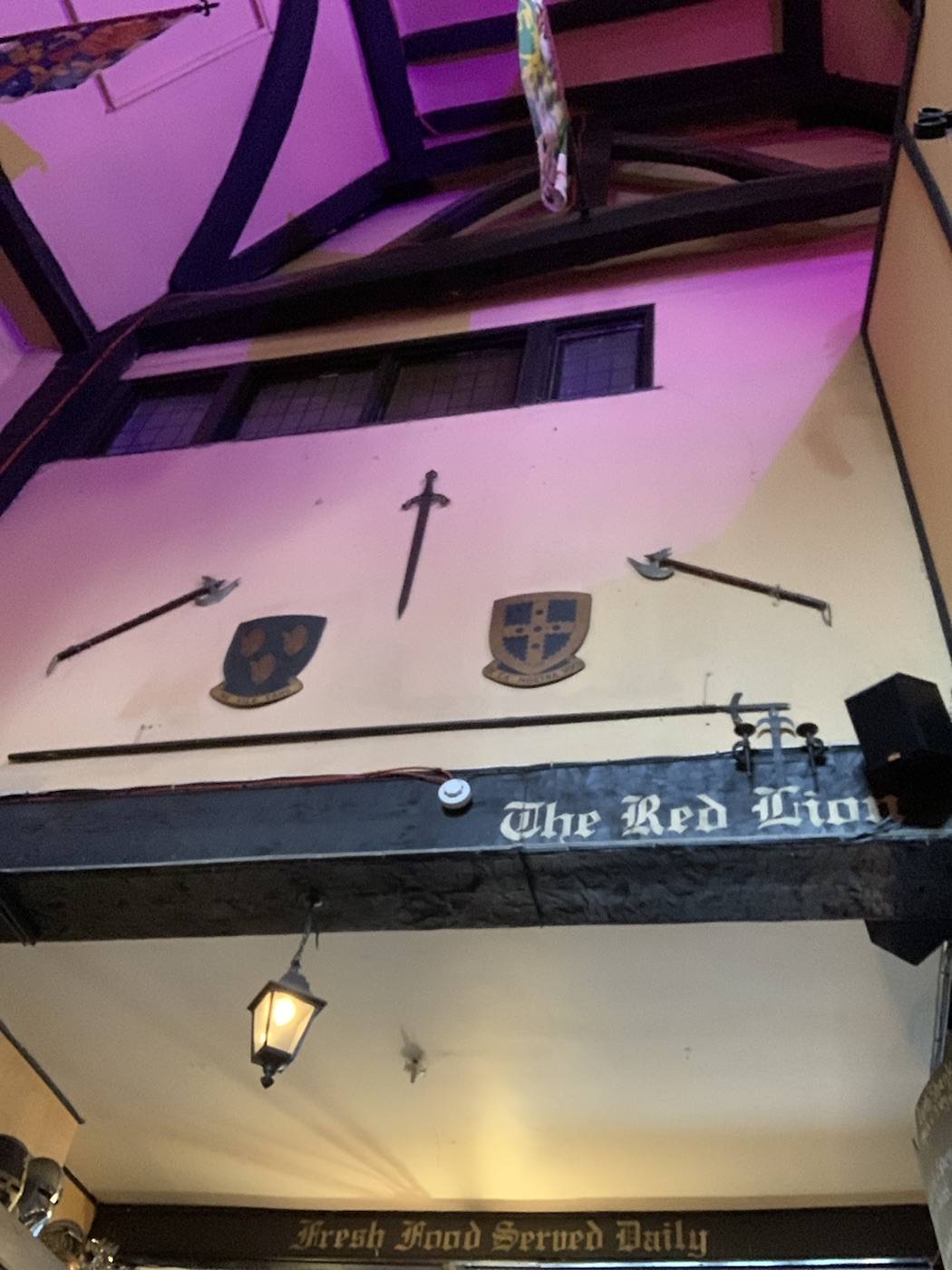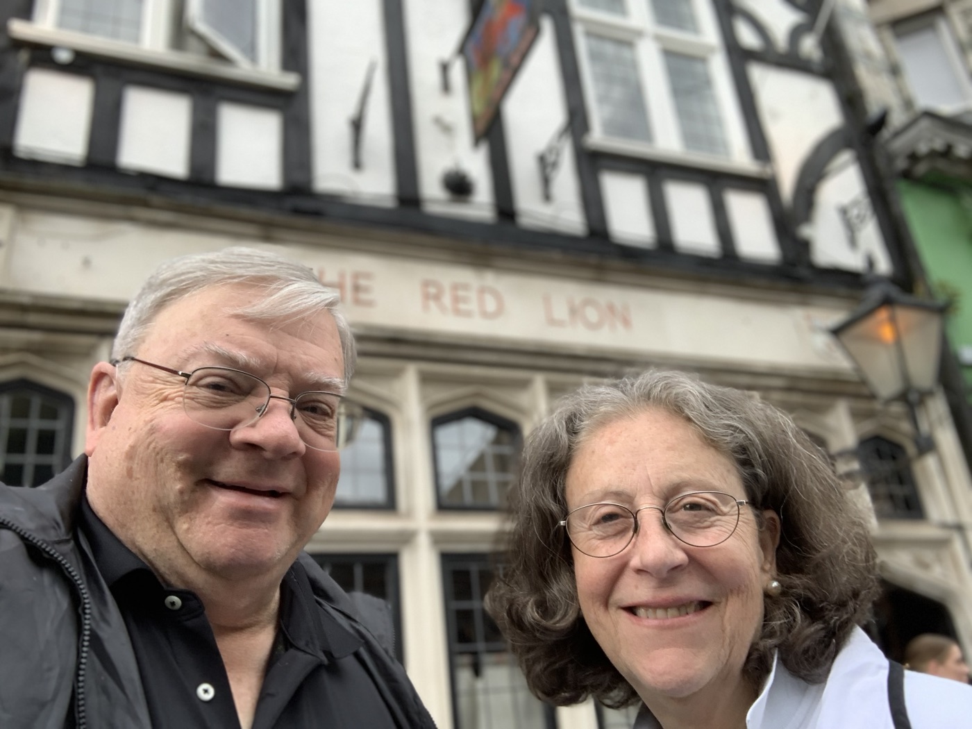 Today we are once again in the port of Southampton having completed the second leg of a journey on Queen Anne to the Canary islands. This morning there was apparently a lot of confusion. We’re not quite sure exactly why, but there appears to have been issues with the disembarkation of travelers who were on the Canary Islands trip. They kept announcing please those of you with XYZ colored tickets should remain on the ship. I think that everybody was trying to disembark at the same time which caused confusion trying to get the luggage and people off the ship into Coaches, other vehicles or taxis while concurrently trying to get the other people who were trying to get onto the ship for the next part of the voyage all sort of mingling in and out at the same time! From our point of view we had a nice leisurely breakfast aboard and then walked into town from the ship. The Mayflower terminal is maybe a five minute bus ride to this West-Quay shopping mall and takes about 20 to 25 minutes to walk, so we walked there. We went through the mall as we were looking for a barbershop as I needed a haircut, which was successfully accomplished. We were told about another pub called the Red Lion that was well worthwhile going to. It was just past the one that we went to the last time – “The (Weatherspoon) Standing Order” and eventually found it on High Street and thoroughly enjoyed a delicious lunch. The main structure of the building had been built during the Norman period (1050 to 1070) modified during the Tudor era. We had a very good lunch, with a pint of Guinness, but the servings were so big that we had to leave a portion of the food. Anne had Onion Soup and Fish & Chips and I had Mushrooms on toast and Steak & Ale pie, we could only eat maybe 2/3 of it but we enjoyed ourselves. We then walked back to the ship, so all in all during the day we covered a total of 12 1/2 km of walking which has been sort of the average on those days when we are wandering around the town.