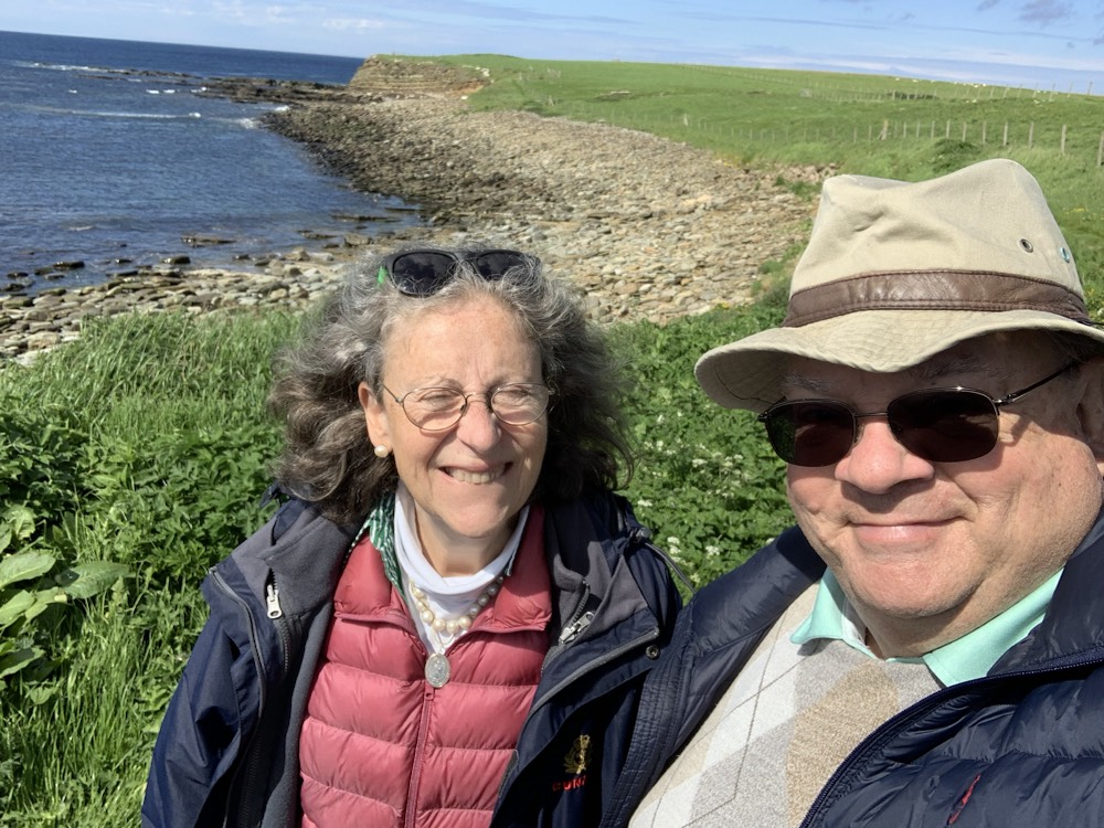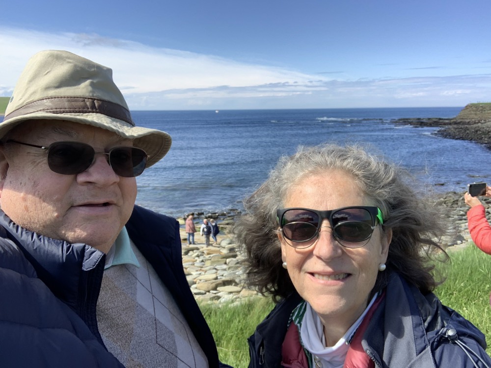 The ship continued its northward journey to a group of islands north of Scotland known as the Orkney Islands. There are about 70 islands of which only 20-21 are inhabited and the greatest population is on the main Island where Kirkwall is located and is the Capital. First some geography. If one goes to John O’Groats, the northern most point on the island that is comprised of England, Scotland and Wales (the southern most being Lands End in Cornwall) and you then continue by sea, north, one gets to the Orkney Islands. It is roughly on a latitude of St. Petersburg in Russia or southern Greenland. Thus in the summer, there is virtually no night and in the winter daylight hours are very short. London is closer to Rome, Italy than it is to Kirkwall, to give another dimension. We were fortunate that it was a picture perfect sunny day, not too hot or cold and not too much wind. Absolutely ideal conditions.
