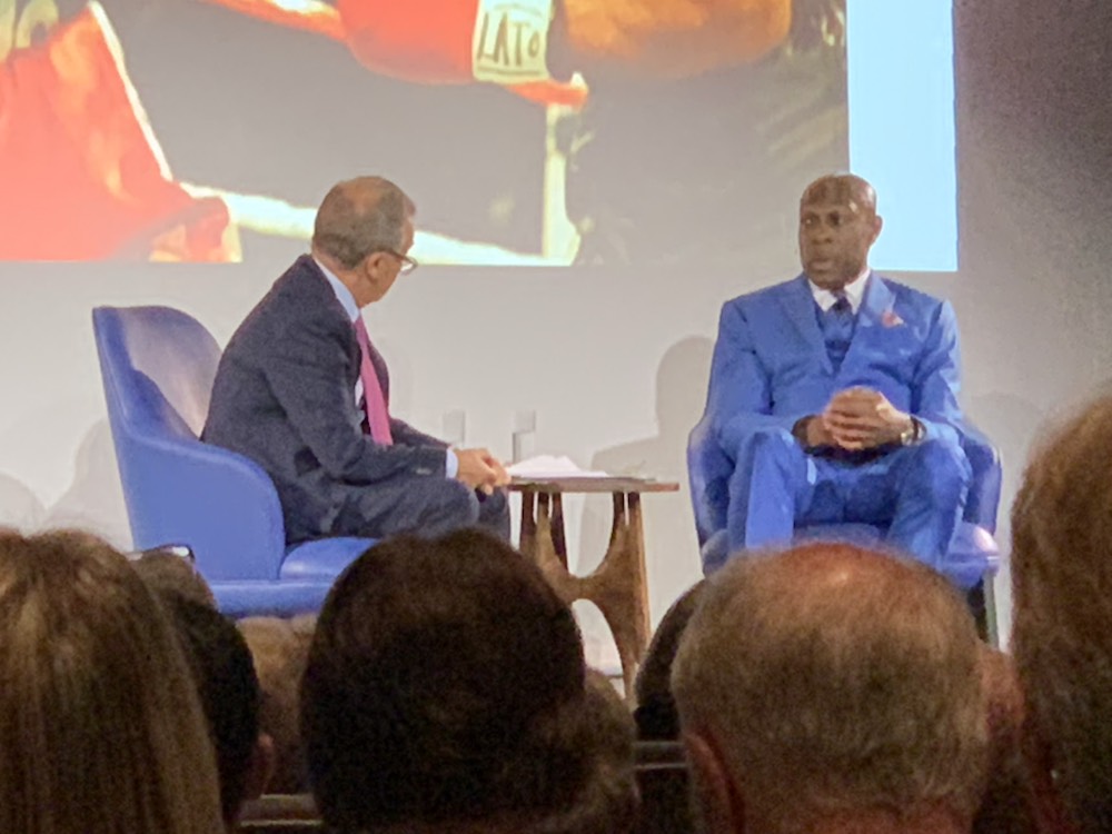 Next came an interesting interview to a completely full theatre to the point where there was not even standing room in the aisles. What brought out the crowds – a live in-person interview by the 40 year BBC Radio Presenter – Gary Richardson, interviewing the World Heavyweight Boxer – Frank Bruno. From his beginnings, to his Mike Tyson fight to the fight where be became the world champion, to the depths of mental despair and his charity that helps thousands of people get help with mental illnesses. A very amusing and enlightening experience.